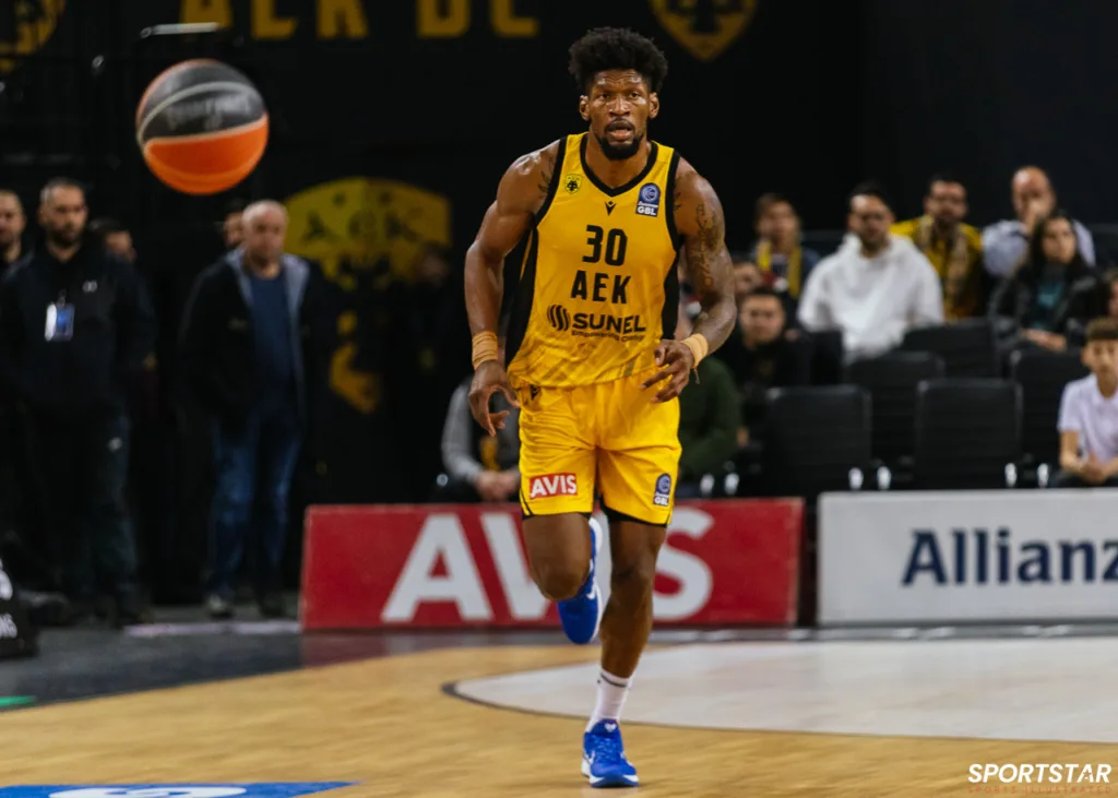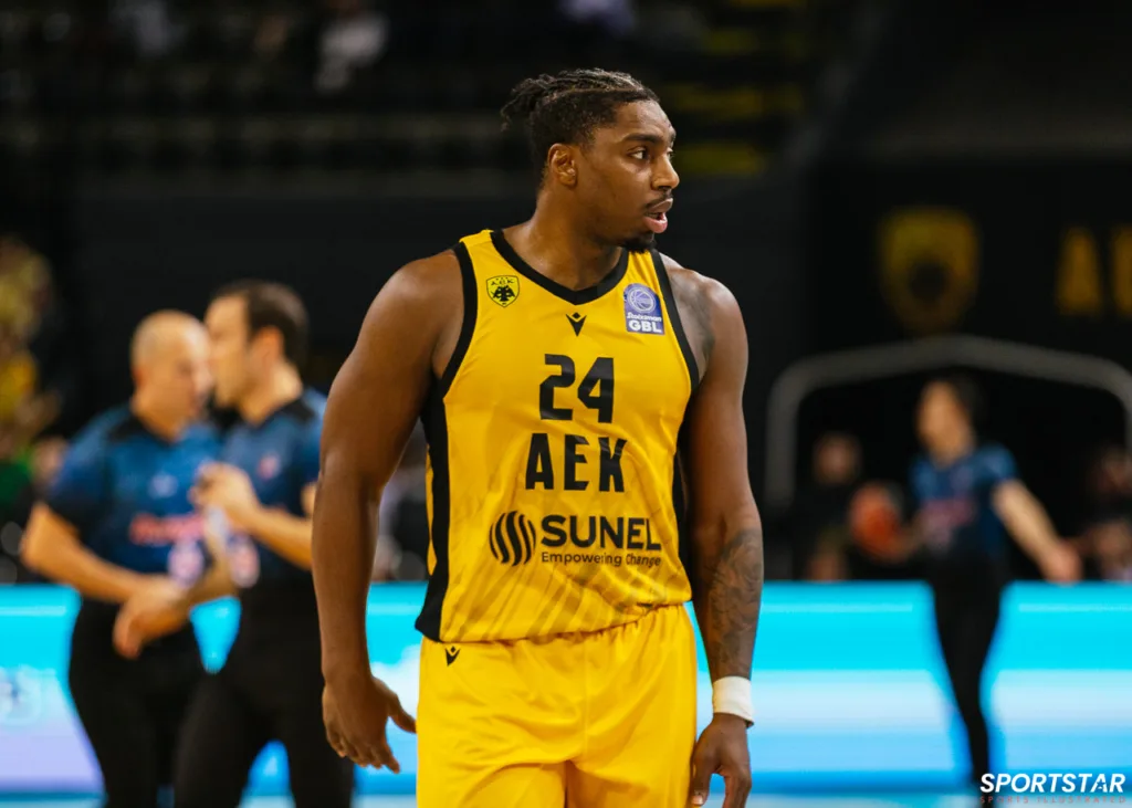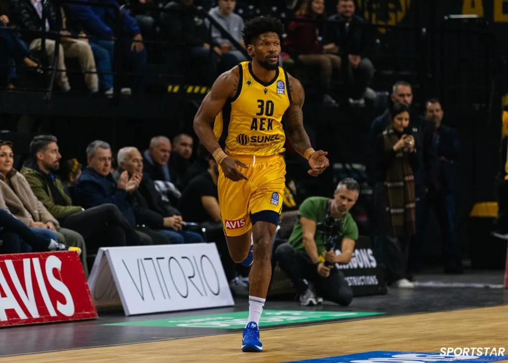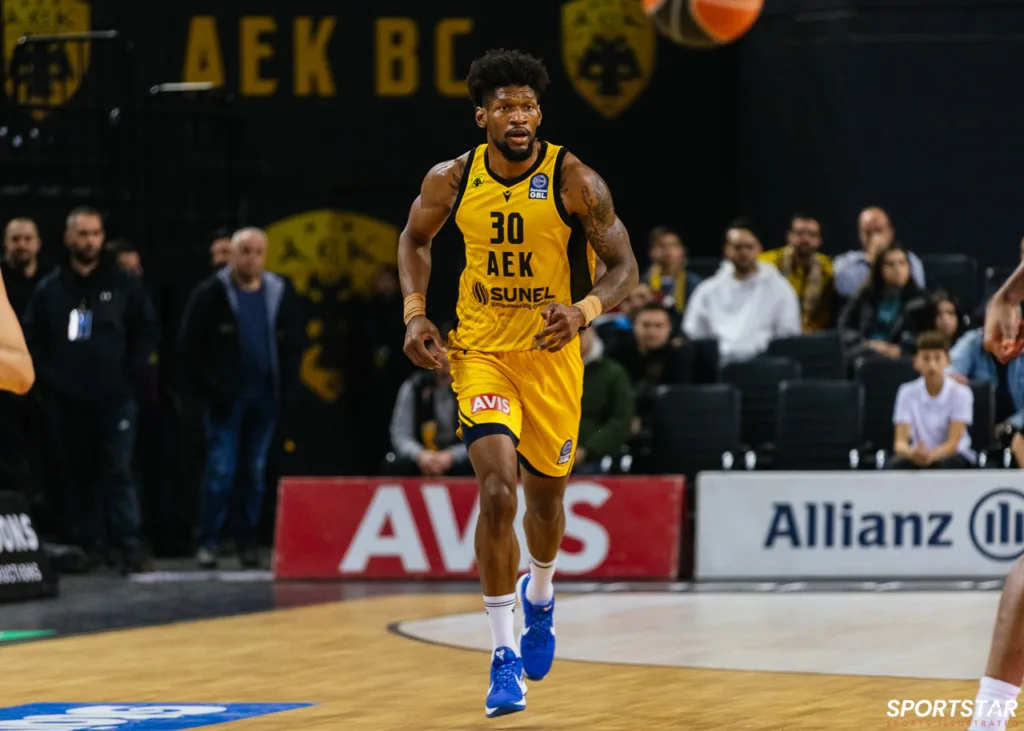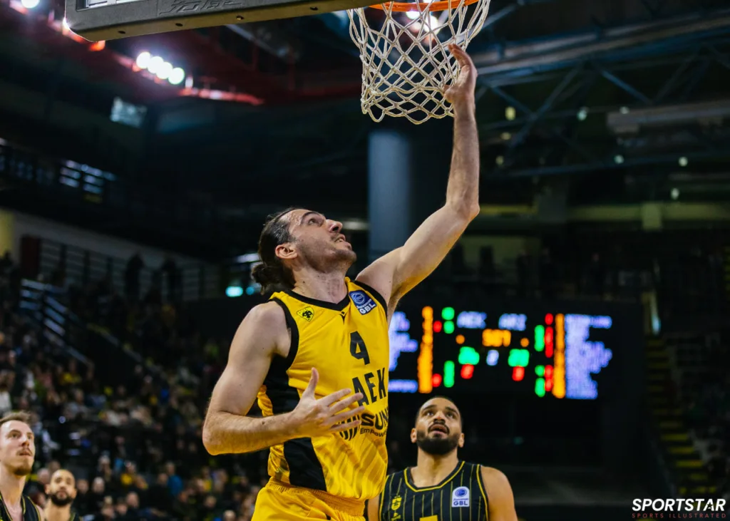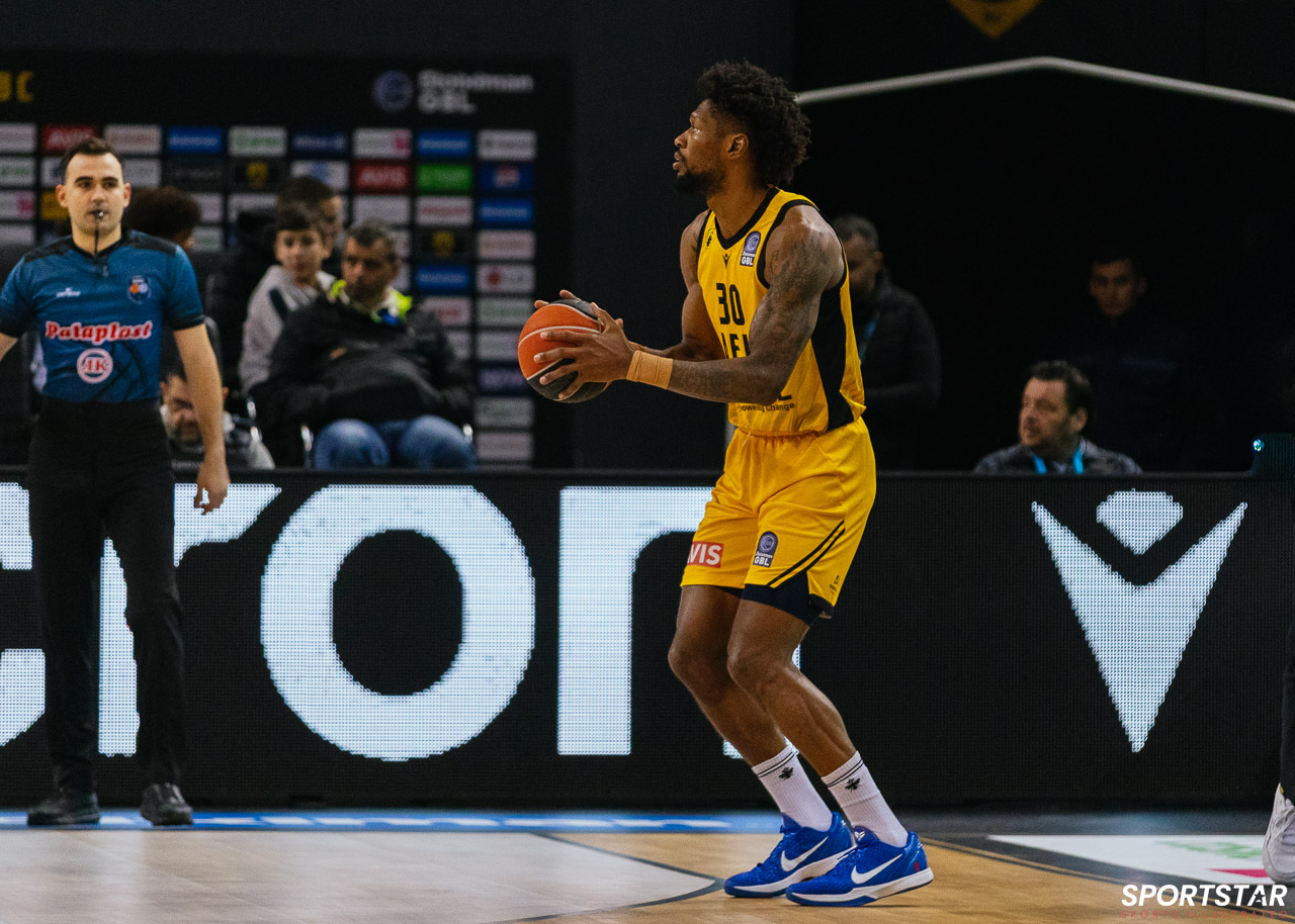 Στιγμιότυπο από τον αγώνα ΑΕΚ - Άρης για την 13η αγωνιστική της GBL στη SUNEL ARENA