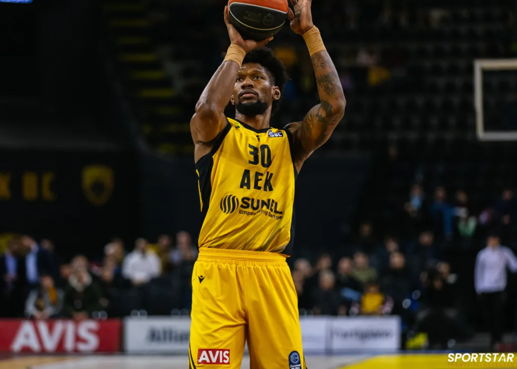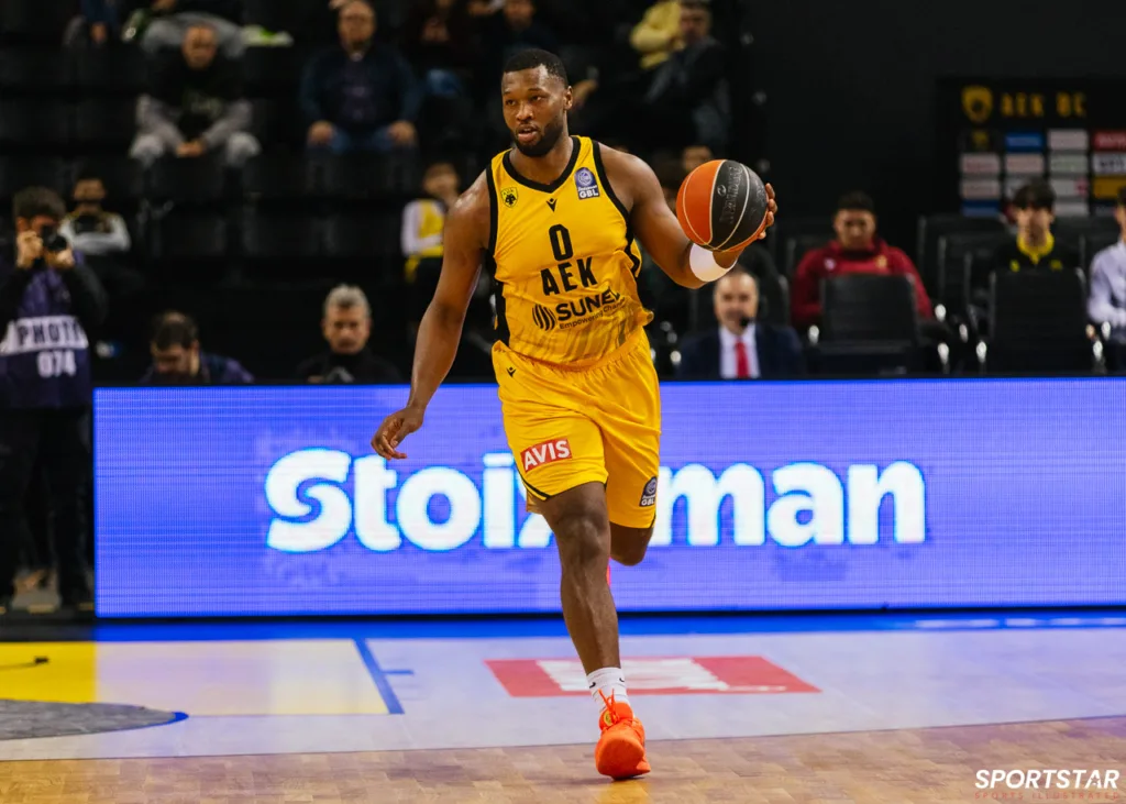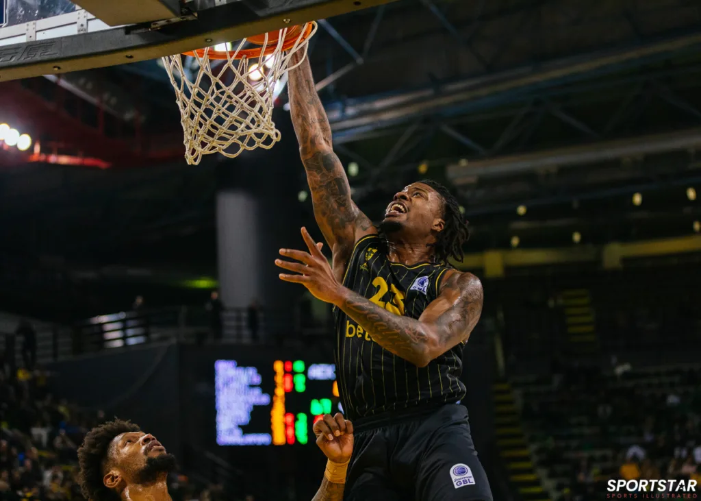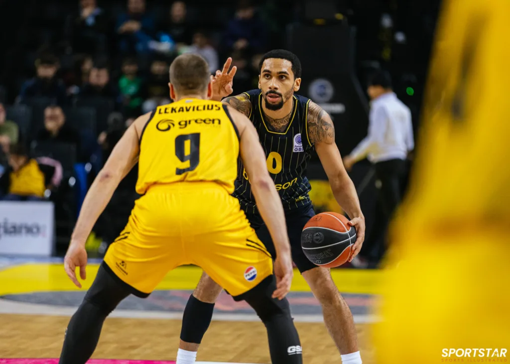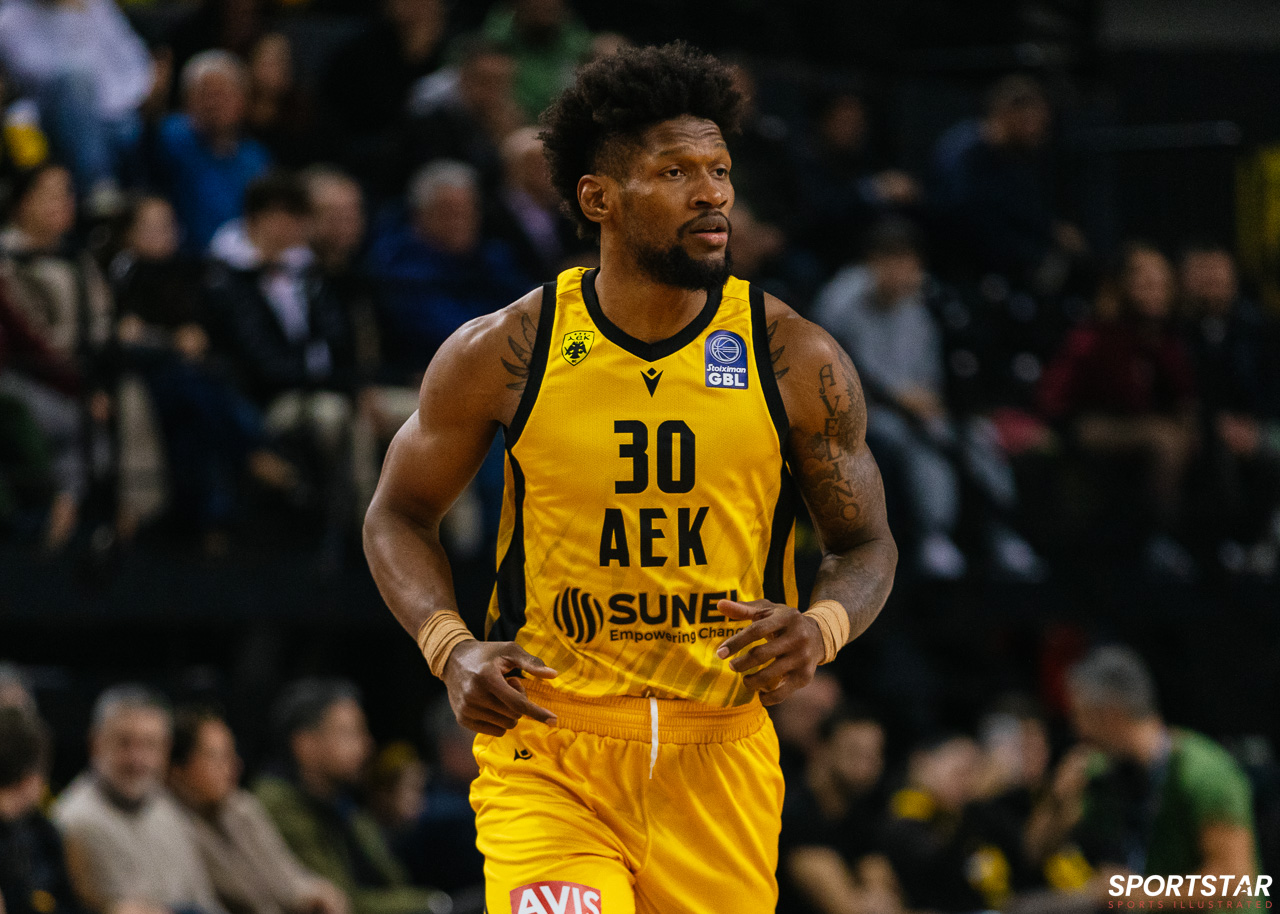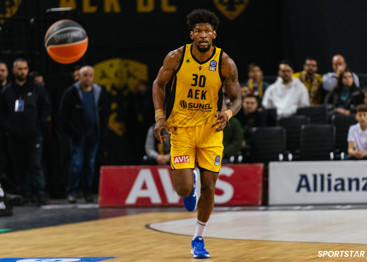 Στιγμιότυπο από τον αγώνα ΑΕΚ - Άρης για την 13η αγωνιστική της GBL στη SUNEL ARENA