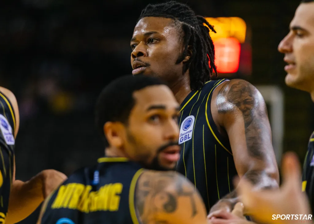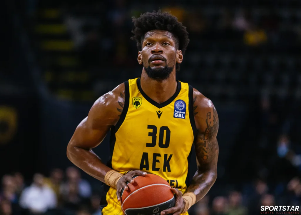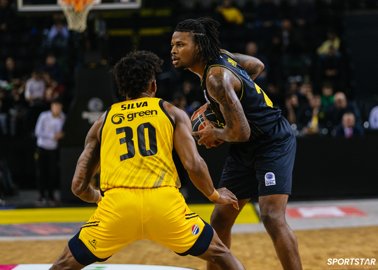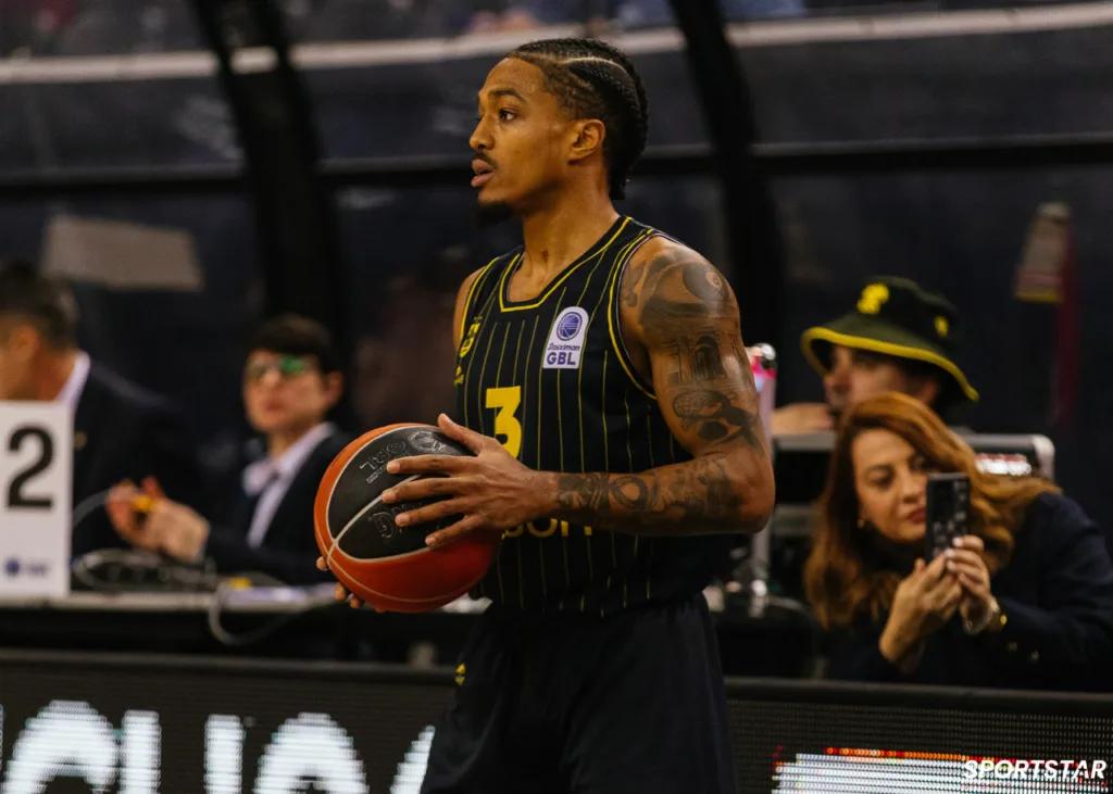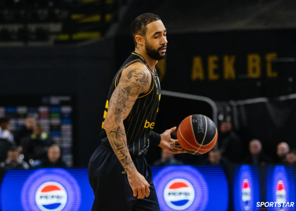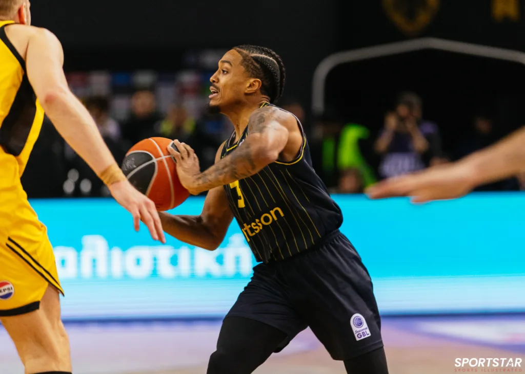 Στιγμιότυπο από τον αγώνα ΑΕΚ - Άρης για την 13η αγωνιστική της GBL στη SUNEL ARENA