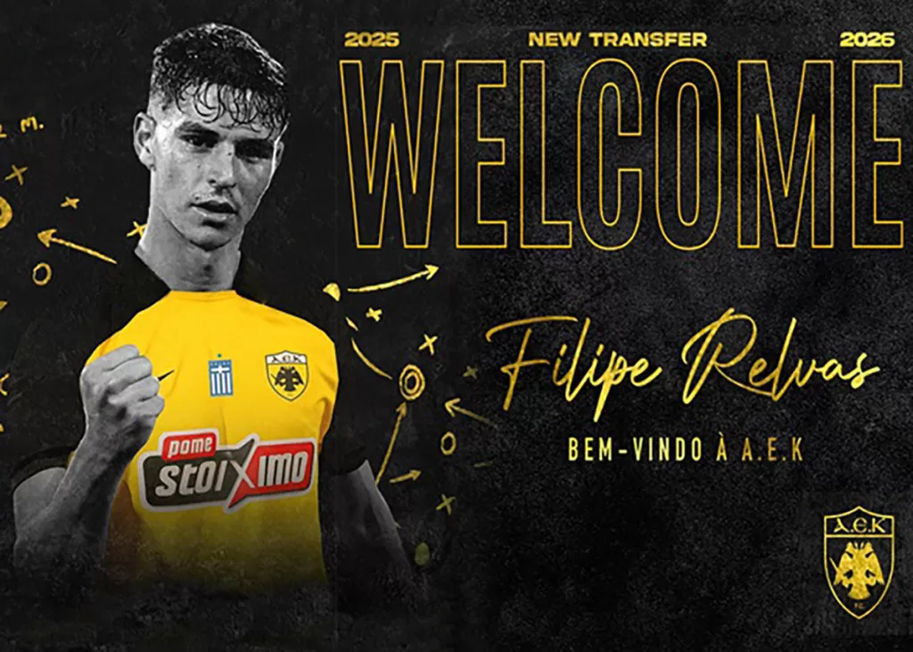 Η ΠΑΕ ΑΕΚ ανακοίνωσε και επίσημα την τρίτη φετινή της μεταγραφή μετά τον Κουτέσα και Καλοσκάμη τον Φιλίπε Ρέλβας από την Βιτόρια Γκιμαράες.
