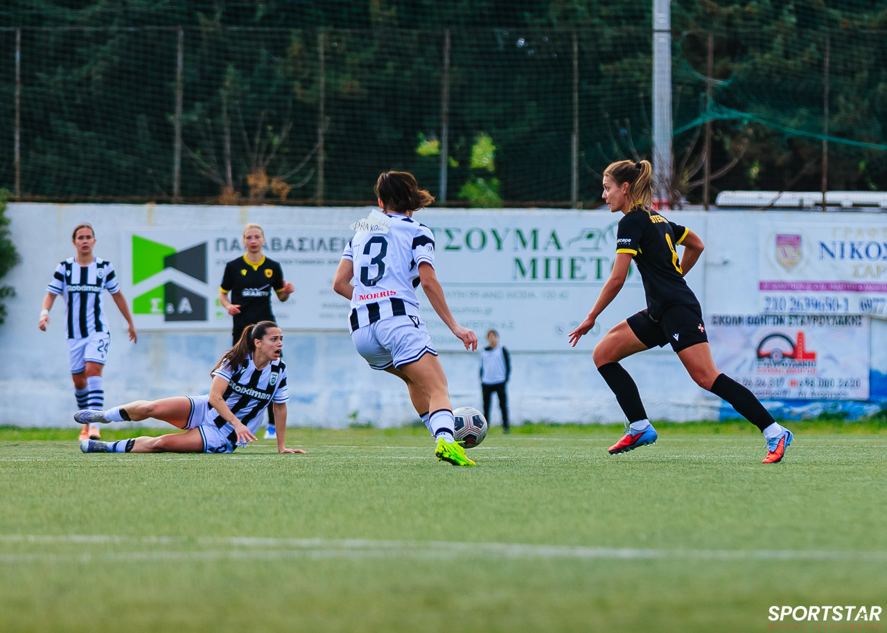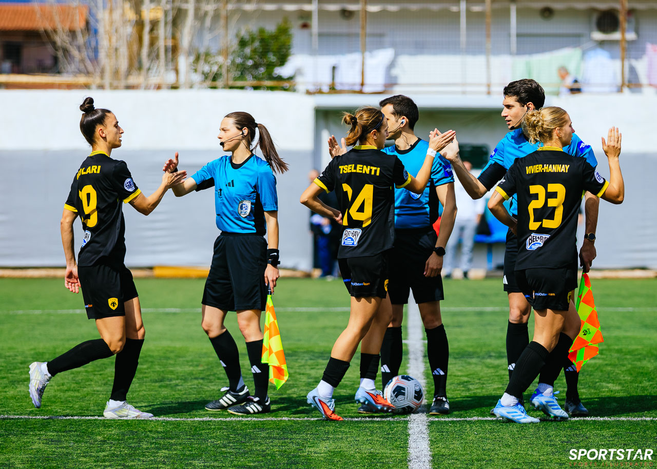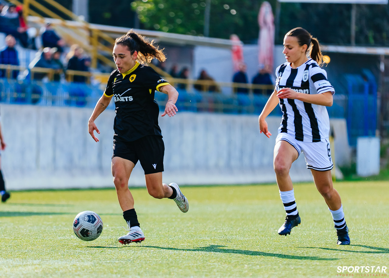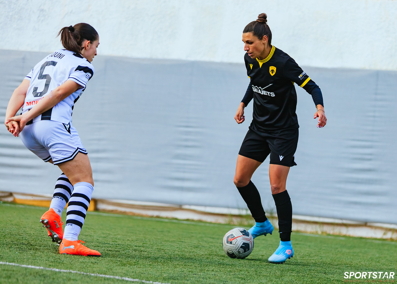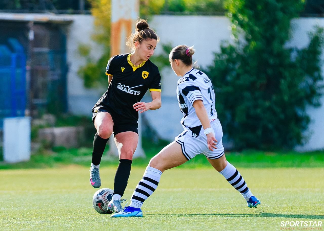 Στιγμές από το μεγάλο ντέρμπι της 20ης αγωνιστικής της Α’ Εθνικής Γυναικών στους Αγίους Αναργύρους, εκεί όπου ΑΕΚ και ΠΑΟΚ έμειναν στο 0-0.