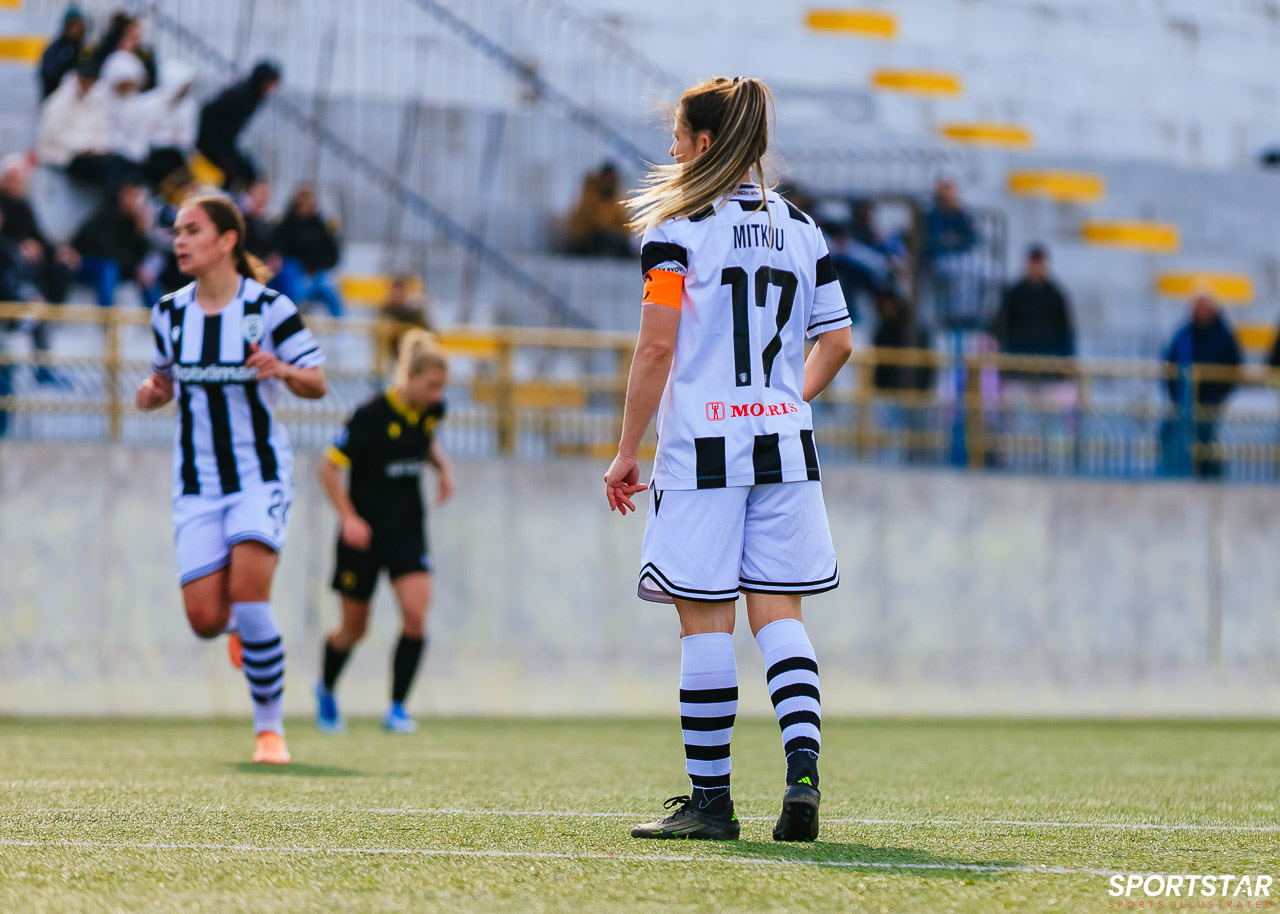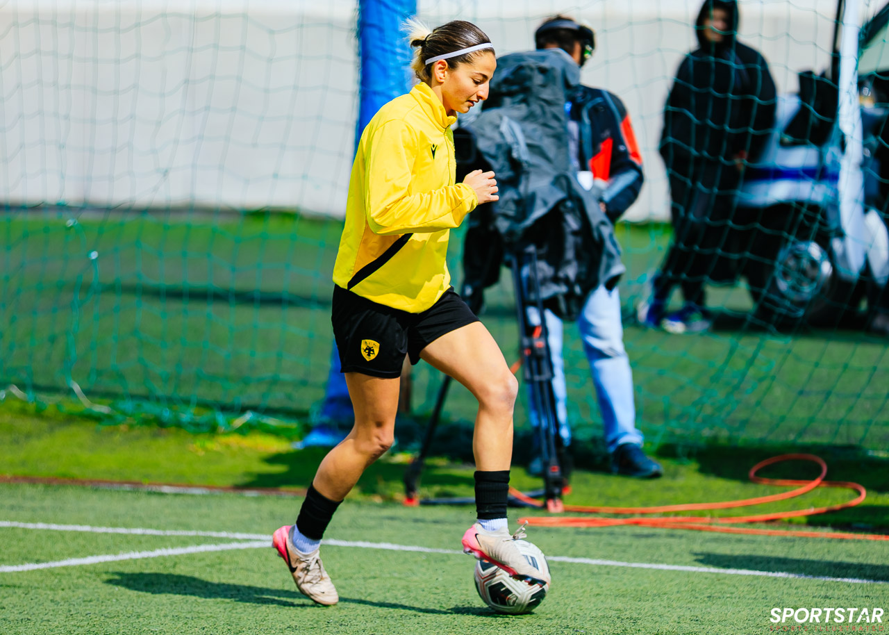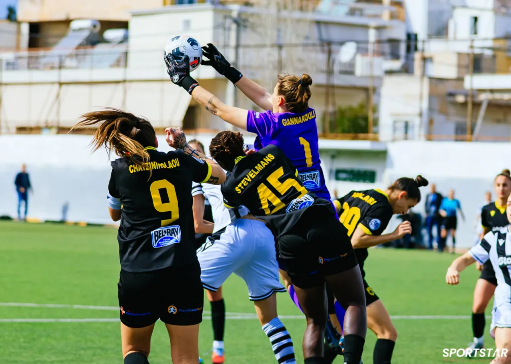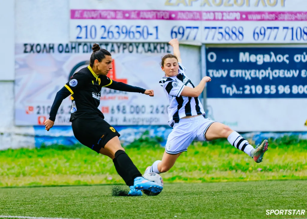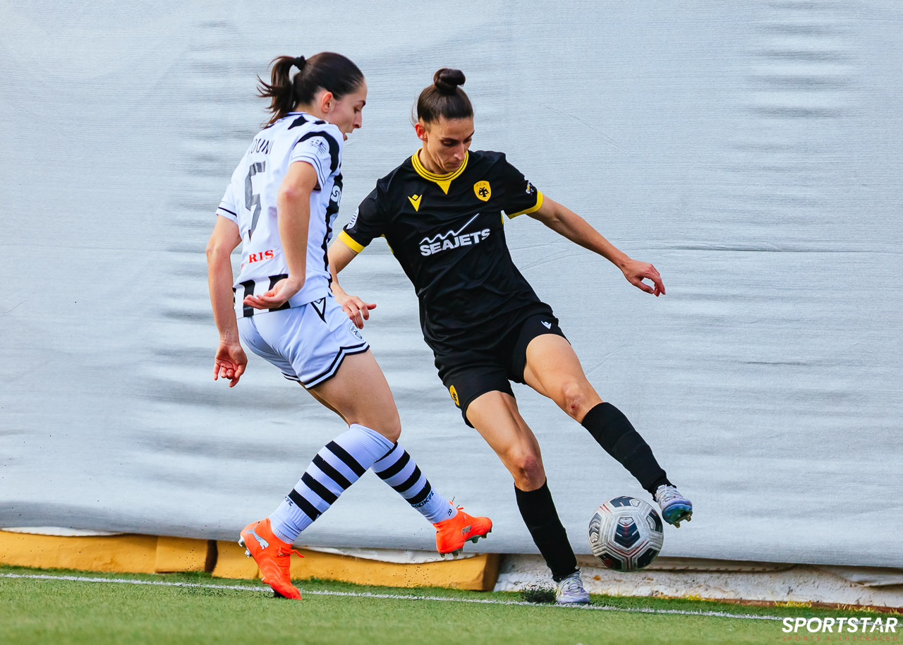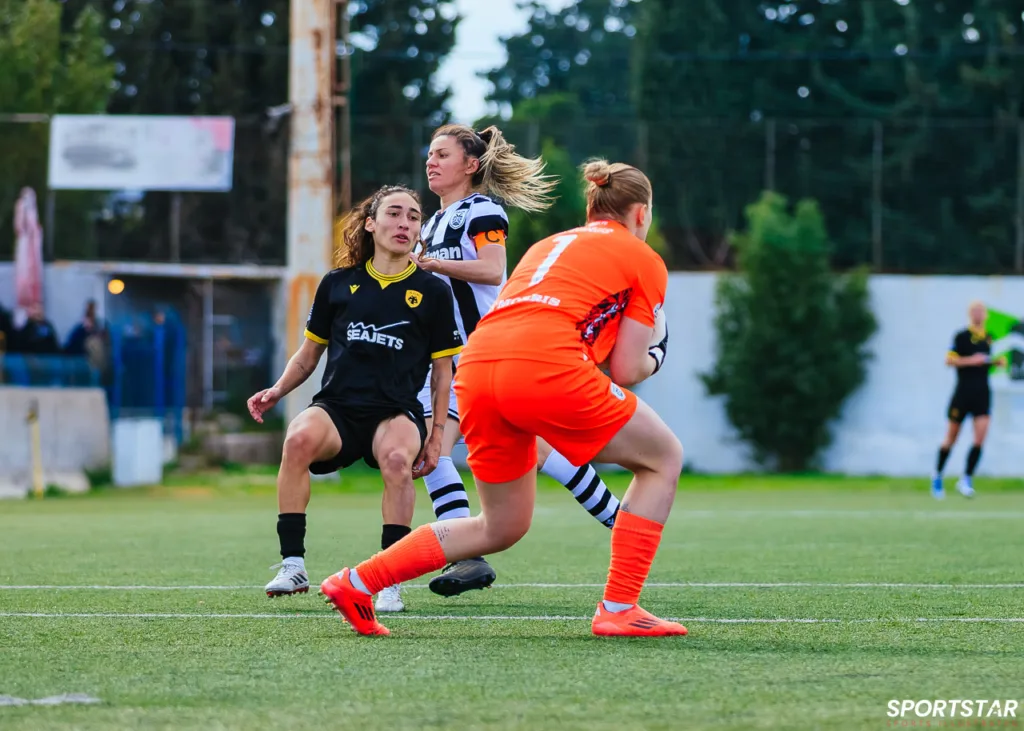 Στιγμές από το μεγάλο ντέρμπι της 20ης αγωνιστικής της Α’ Εθνικής Γυναικών στους Αγίους Αναργύρους, εκεί όπου ΑΕΚ και ΠΑΟΚ έμειναν στο 0-0.