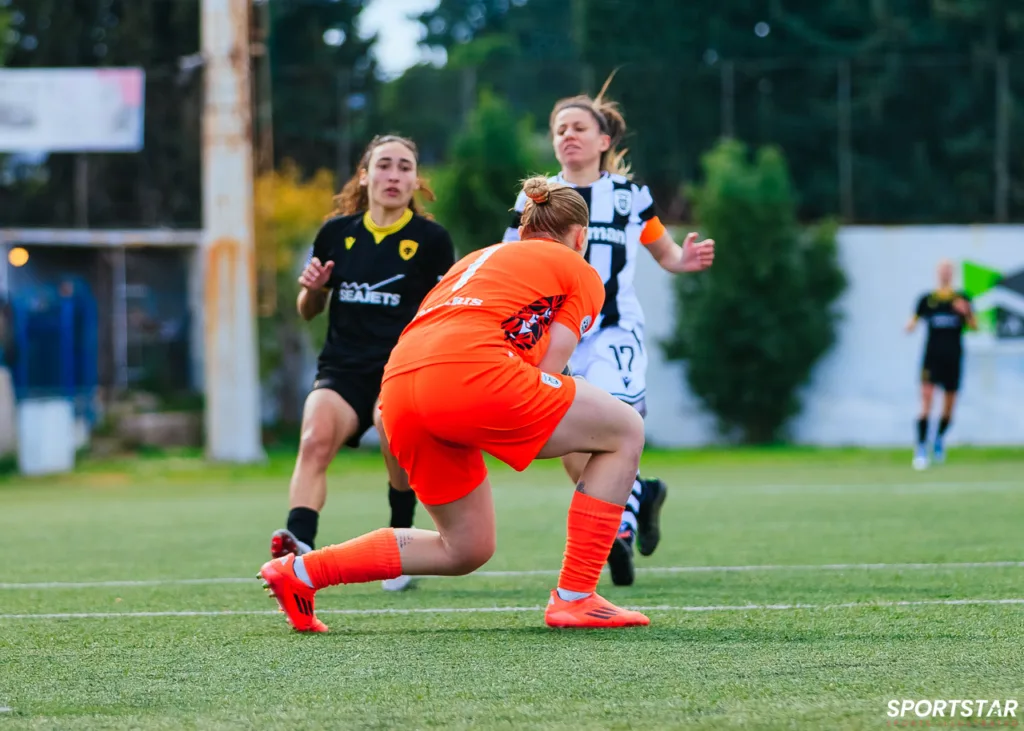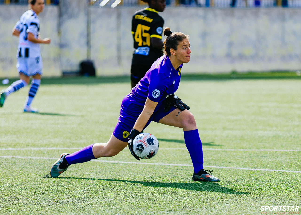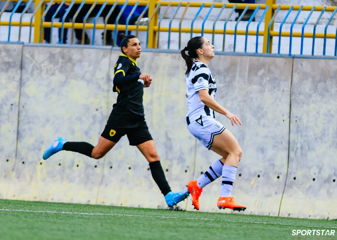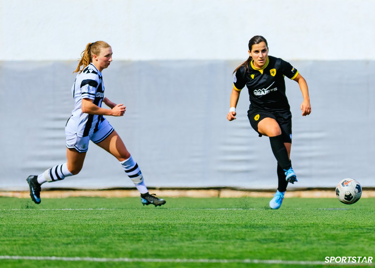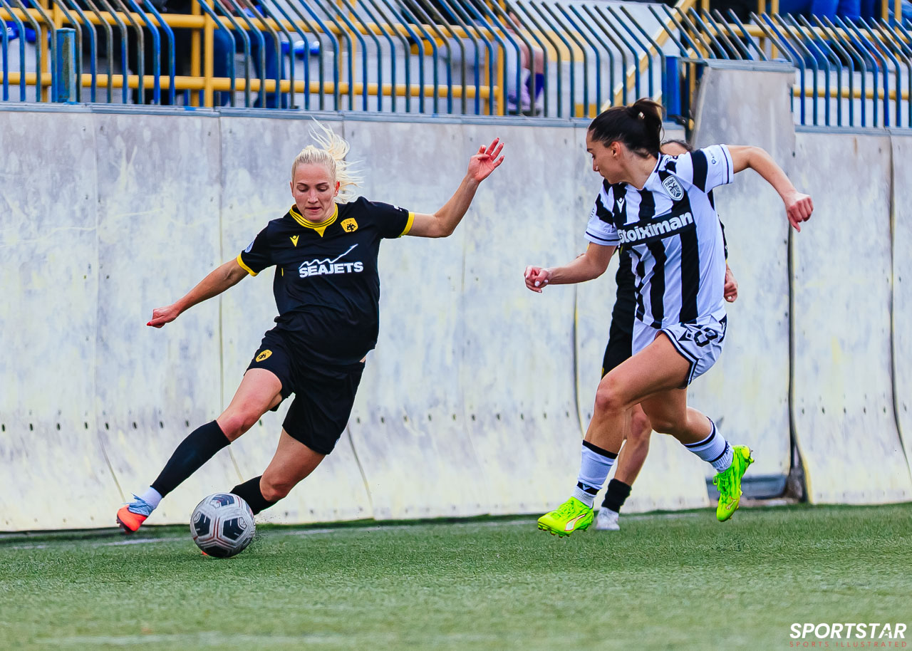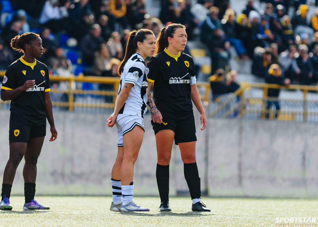 Στιγμές από το μεγάλο ντέρμπι της 20ης αγωνιστικής της Α’ Εθνικής Γυναικών στους Αγίους Αναργύρους, εκεί όπου ΑΕΚ και ΠΑΟΚ έμειναν στο 0-0.