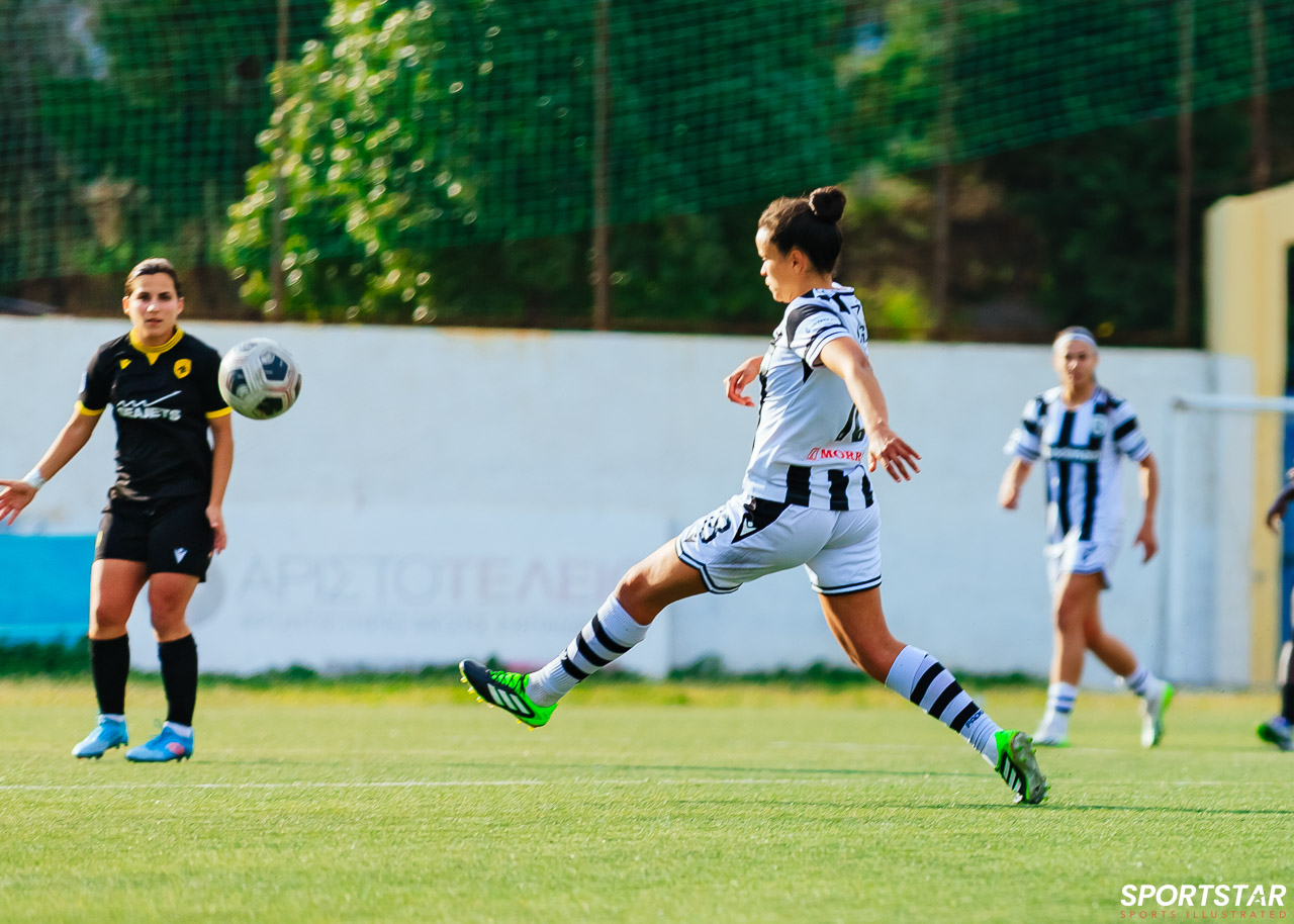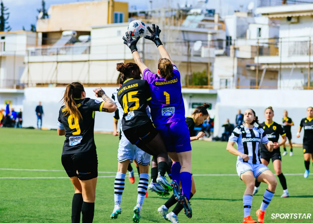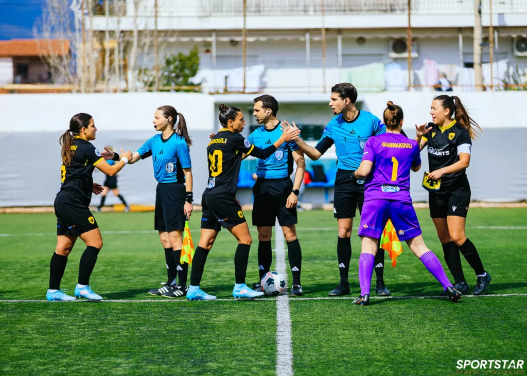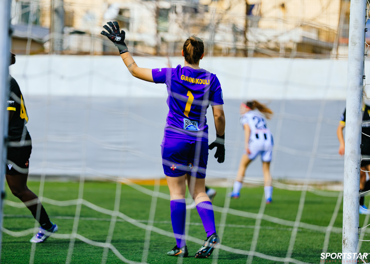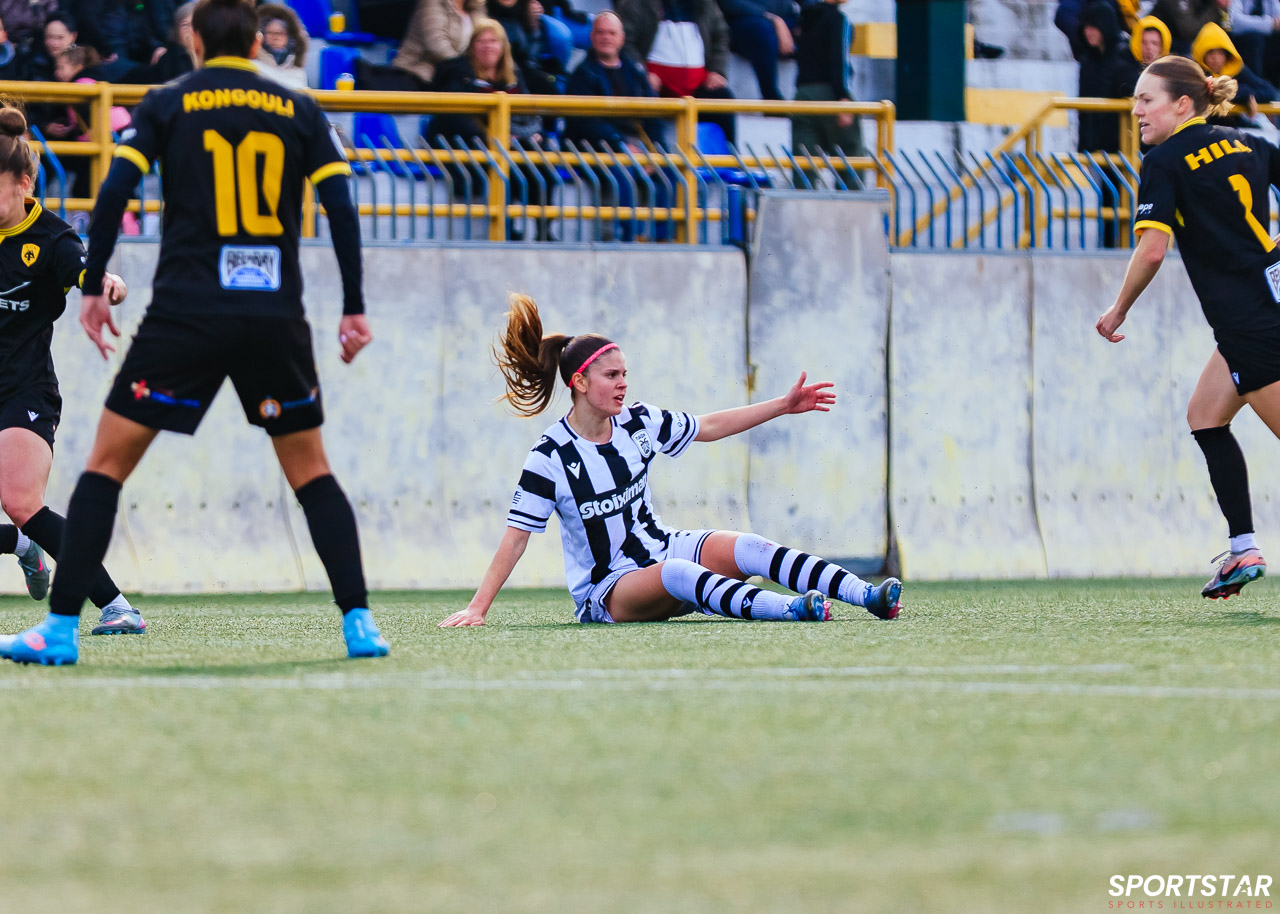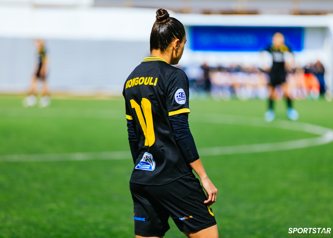 Στιγμές από το μεγάλο ντέρμπι της 20ης αγωνιστικής της Α’ Εθνικής Γυναικών στους Αγίους Αναργύρους, εκεί όπου ΑΕΚ και ΠΑΟΚ έμειναν στο 0-0.