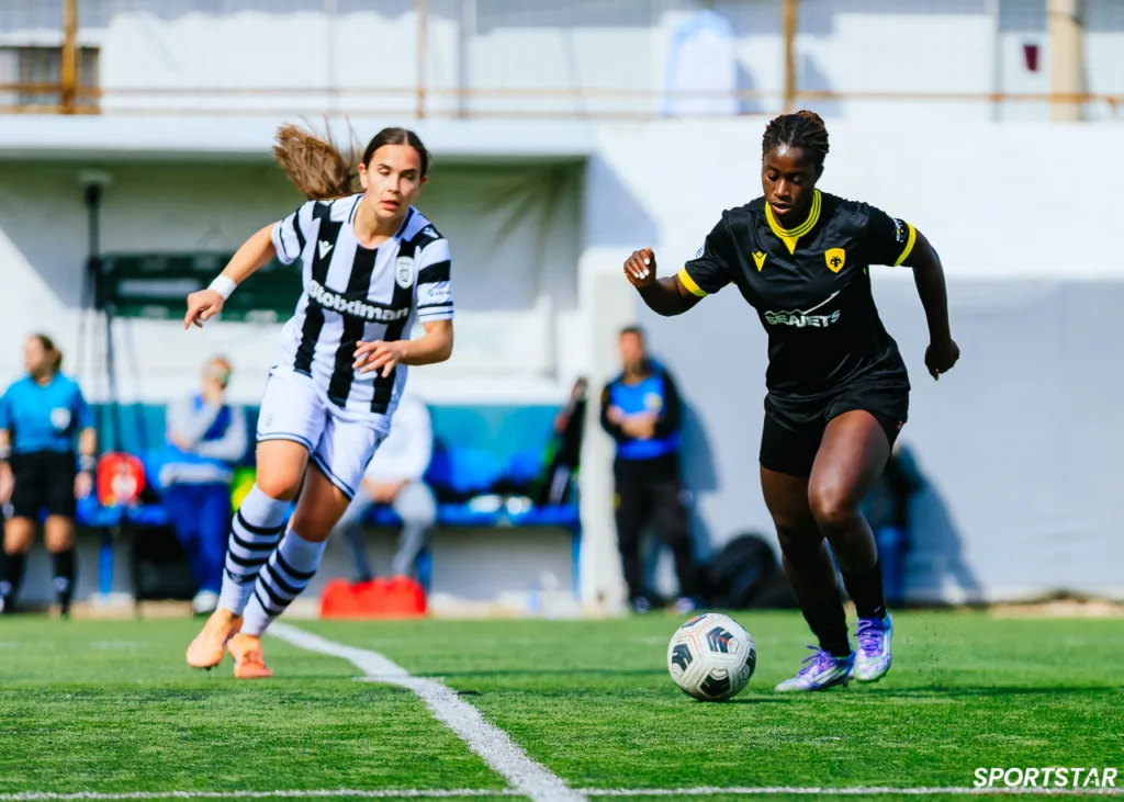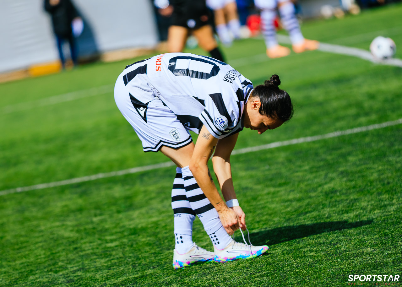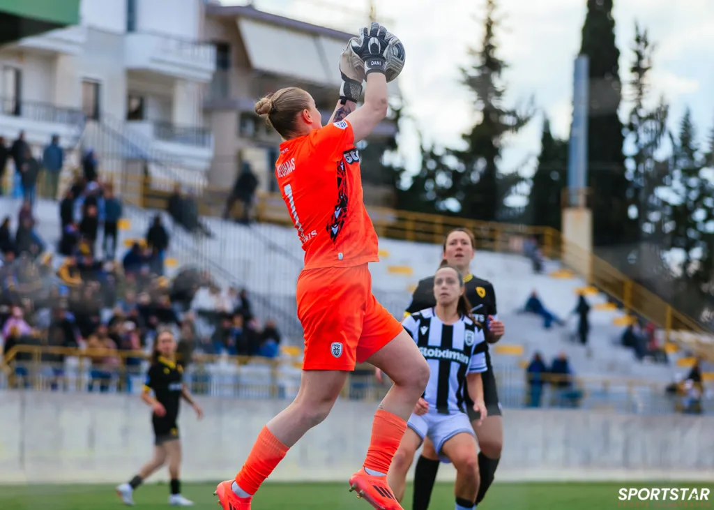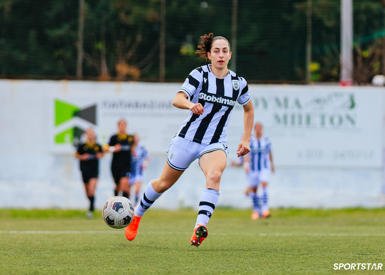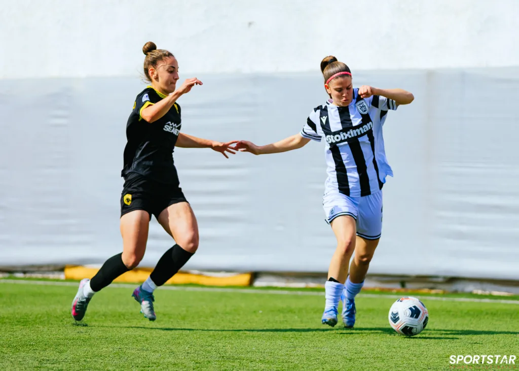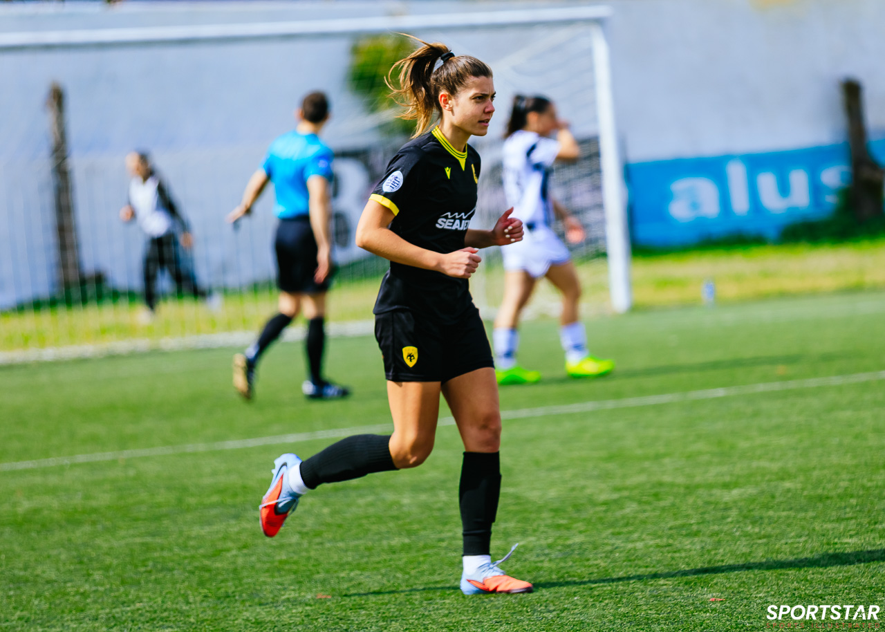 Στιγμές από το μεγάλο ντέρμπι της 20ης αγωνιστικής της Α’ Εθνικής Γυναικών στους Αγίους Αναργύρους, εκεί όπου ΑΕΚ και ΠΑΟΚ έμειναν στο 0-0.