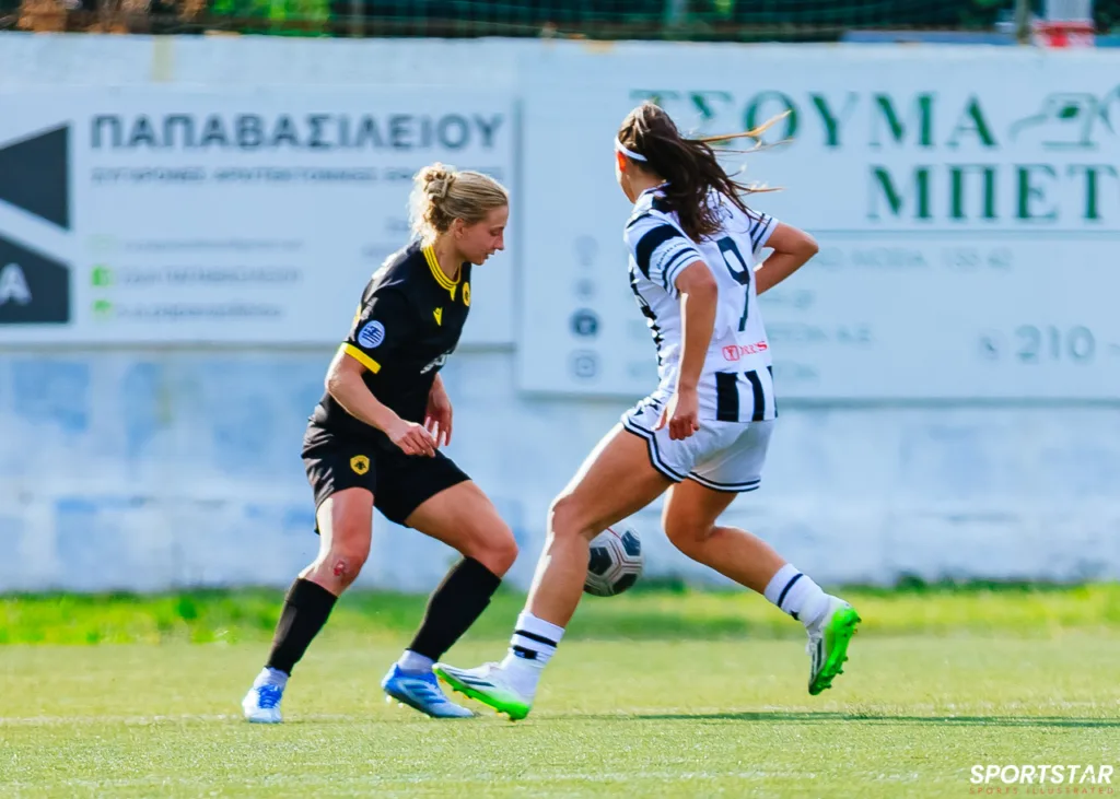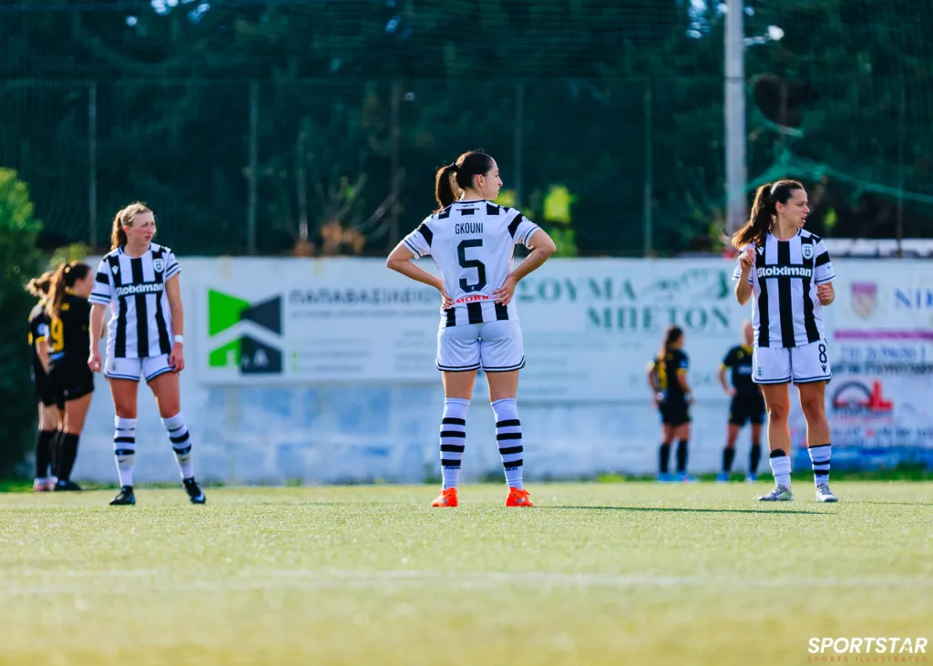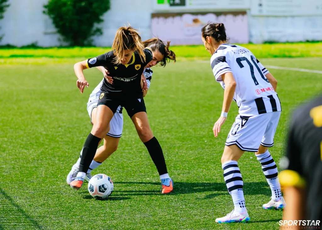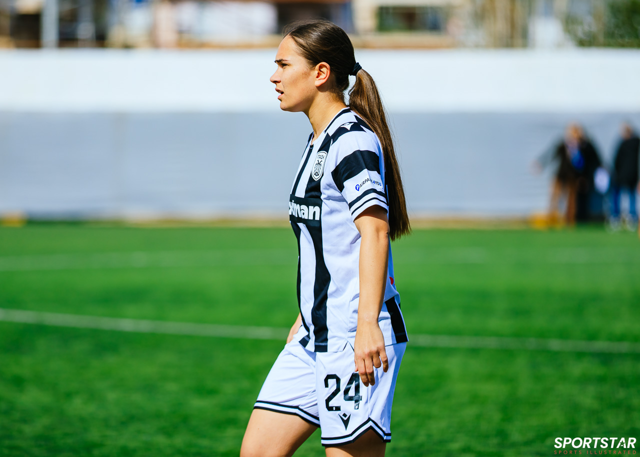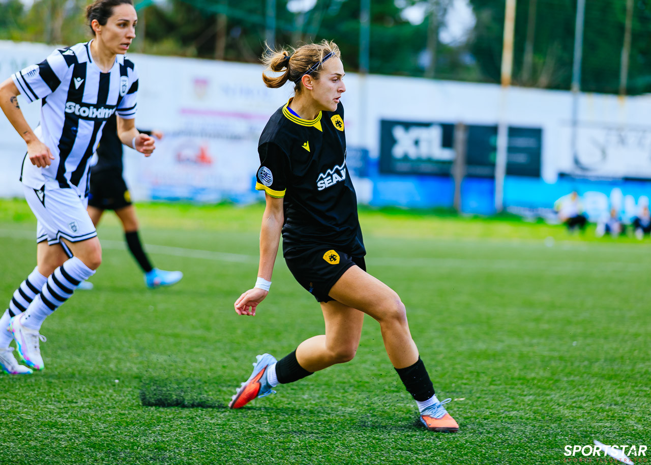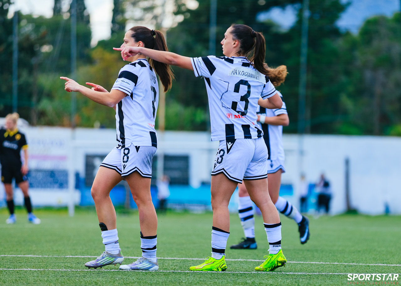 Στιγμές από το μεγάλο ντέρμπι της 20ης αγωνιστικής της Α’ Εθνικής Γυναικών στους Αγίους Αναργύρους, εκεί όπου ΑΕΚ και ΠΑΟΚ έμειναν στο 0-0.