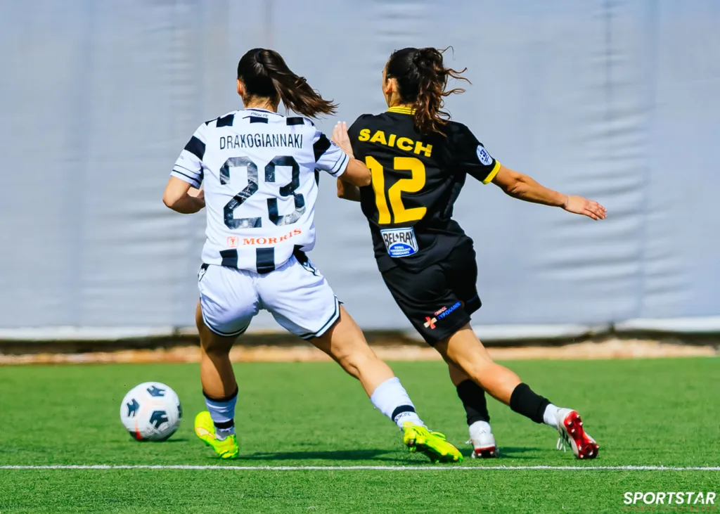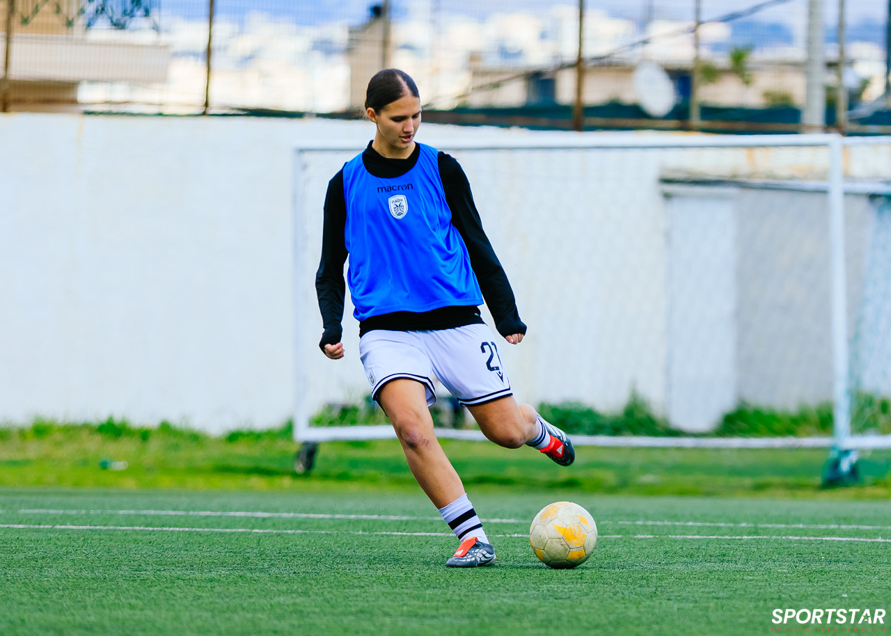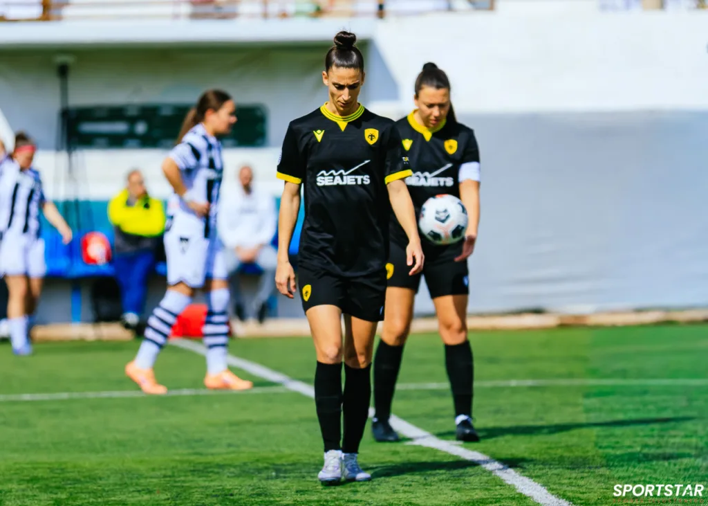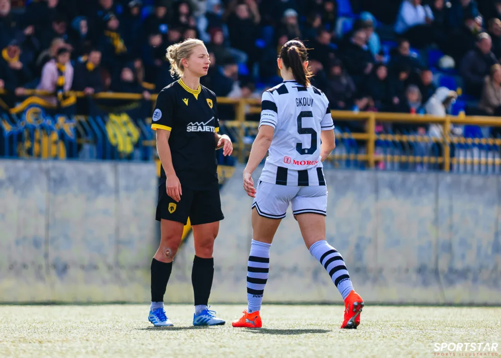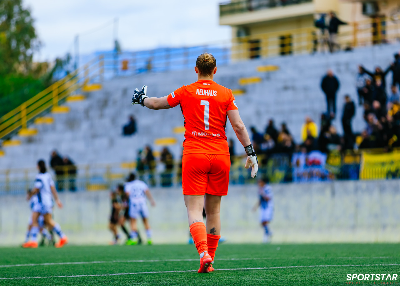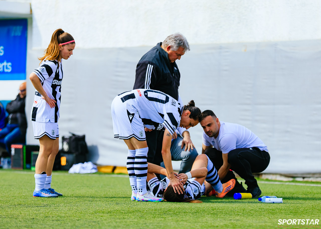 Στιγμές από το μεγάλο ντέρμπι της 20ης αγωνιστικής της Α’ Εθνικής Γυναικών στους Αγίους Αναργύρους, εκεί όπου ΑΕΚ και ΠΑΟΚ έμειναν στο 0-0.