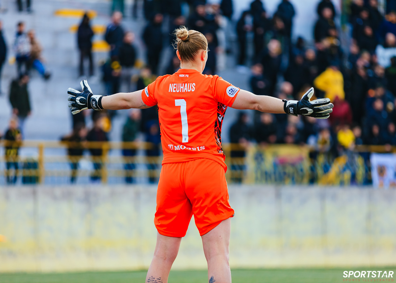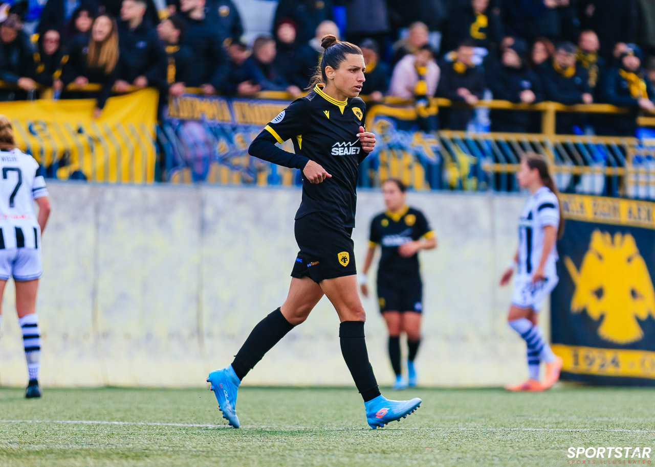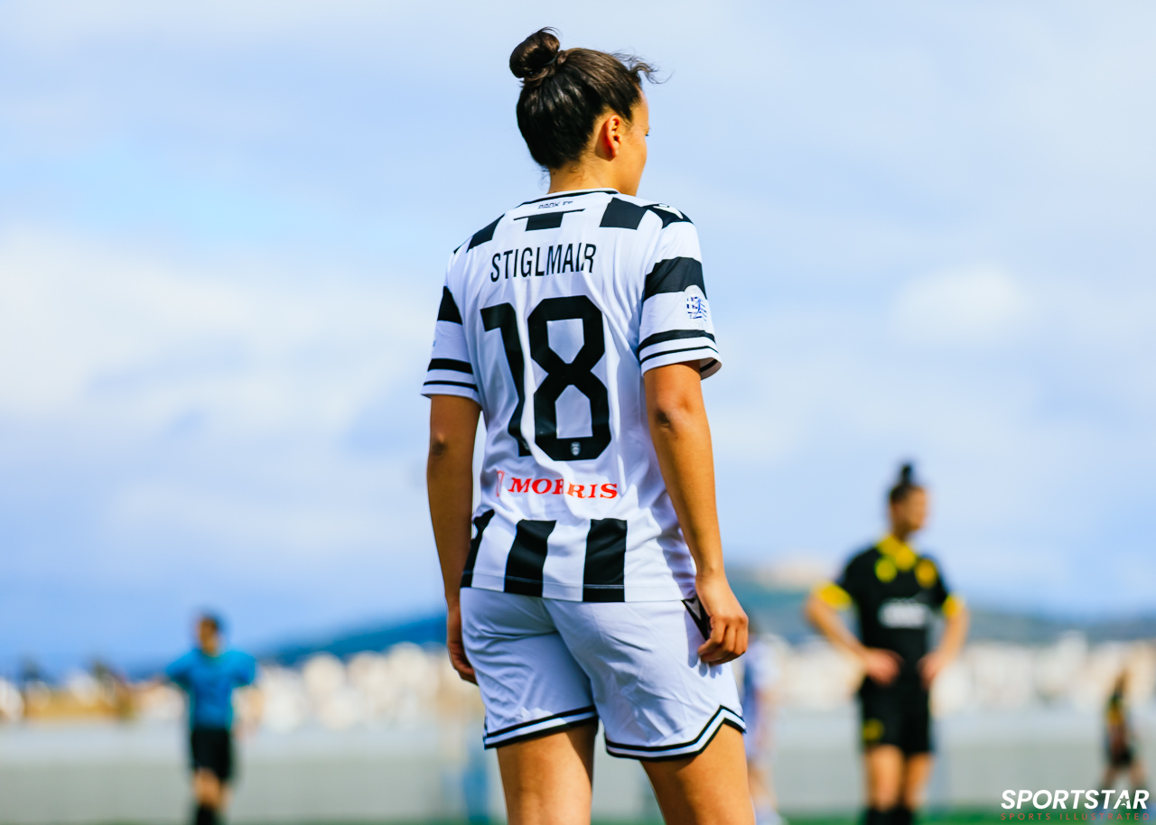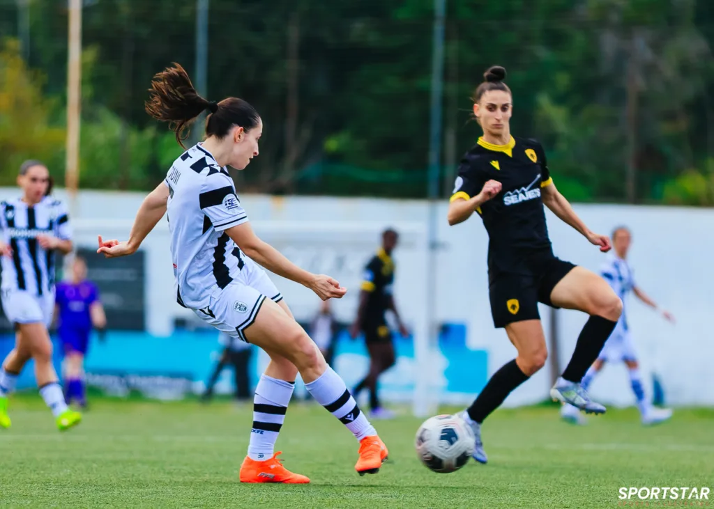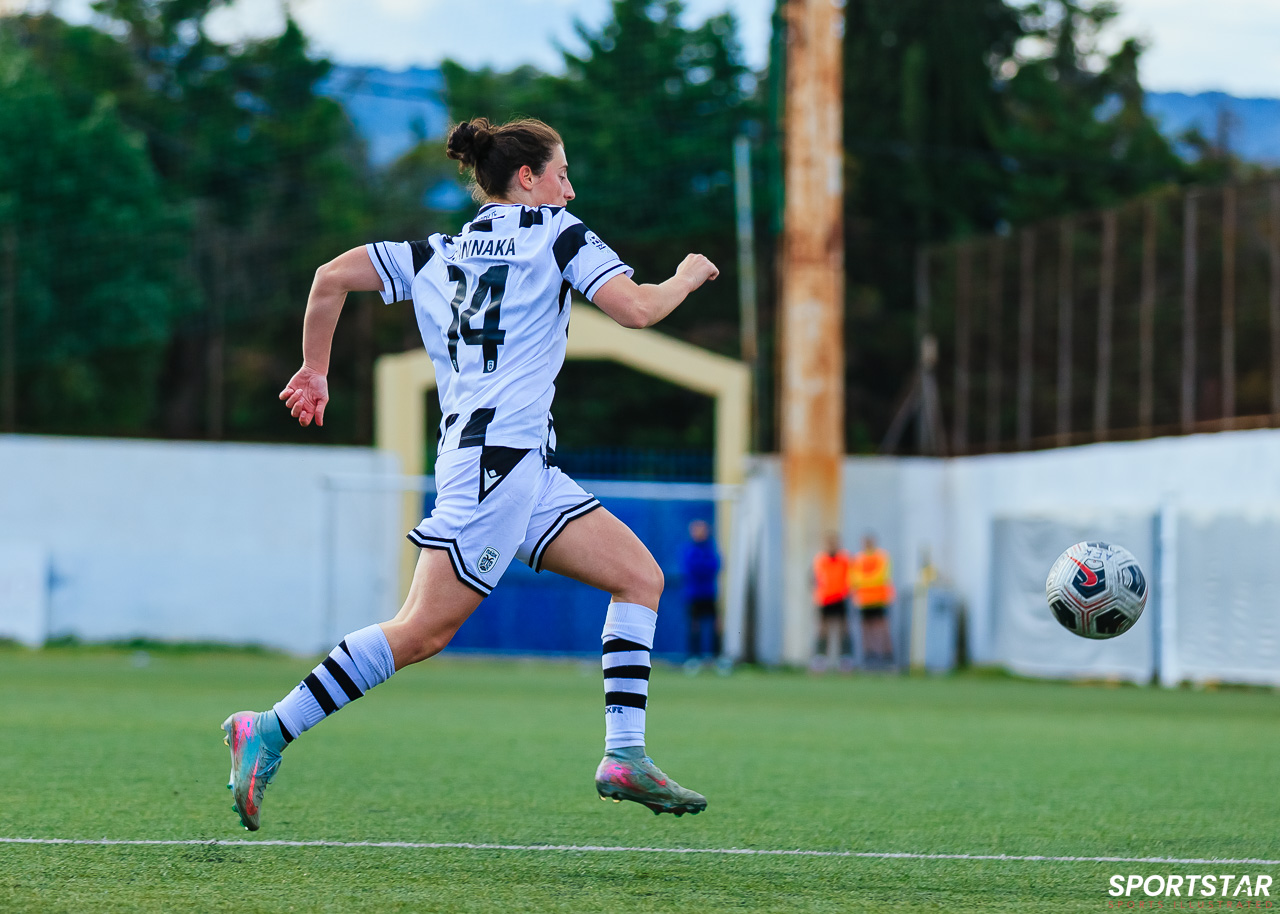 Στιγμές από το μεγάλο ντέρμπι της 20ης αγωνιστικής της Α’ Εθνικής Γυναικών στους Αγίους Αναργύρους, εκεί όπου ΑΕΚ και ΠΑΟΚ έμειναν στο 0-0.