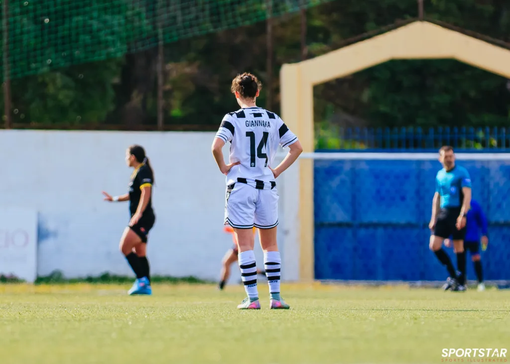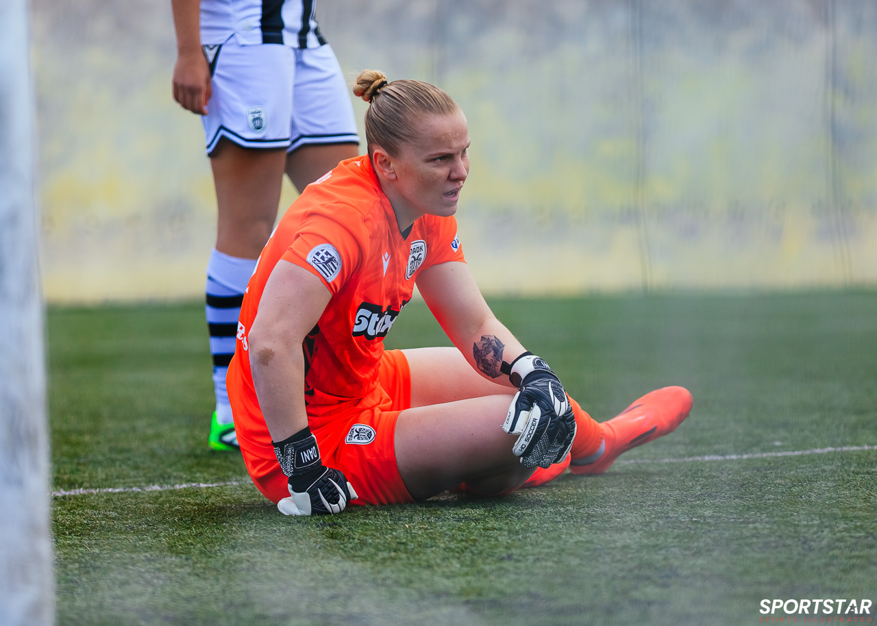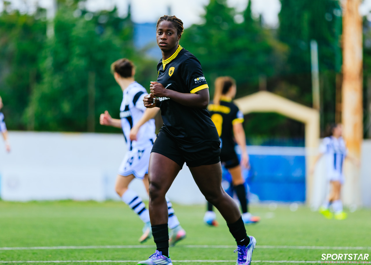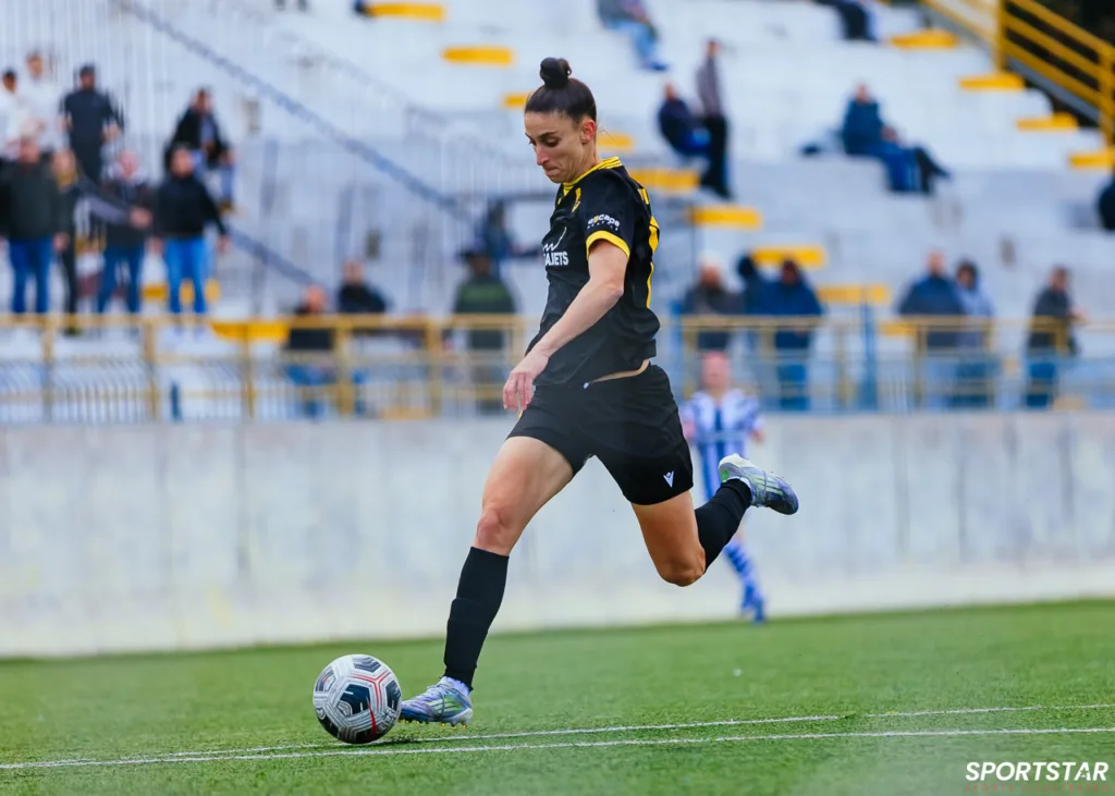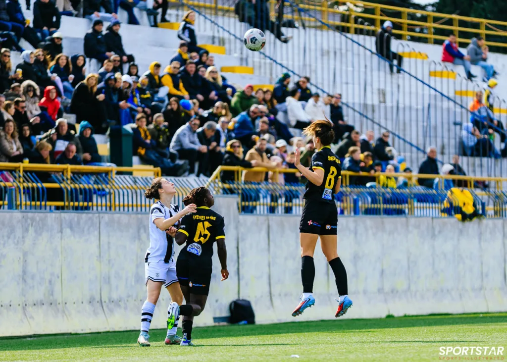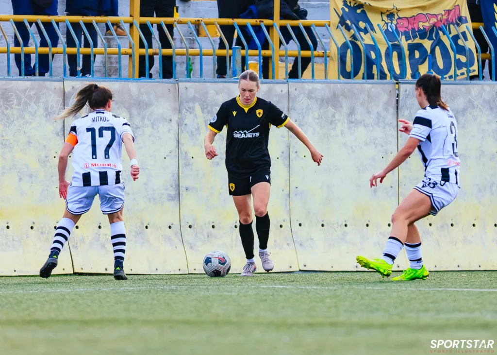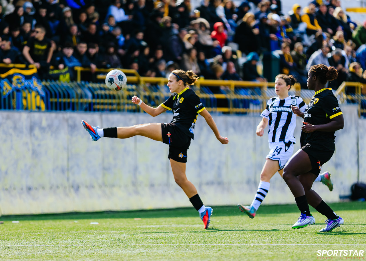 Στιγμές από το μεγάλο ντέρμπι της 20ης αγωνιστικής της Α’ Εθνικής Γυναικών στους Αγίους Αναργύρους, εκεί όπου ΑΕΚ και ΠΑΟΚ έμειναν στο 0-0.