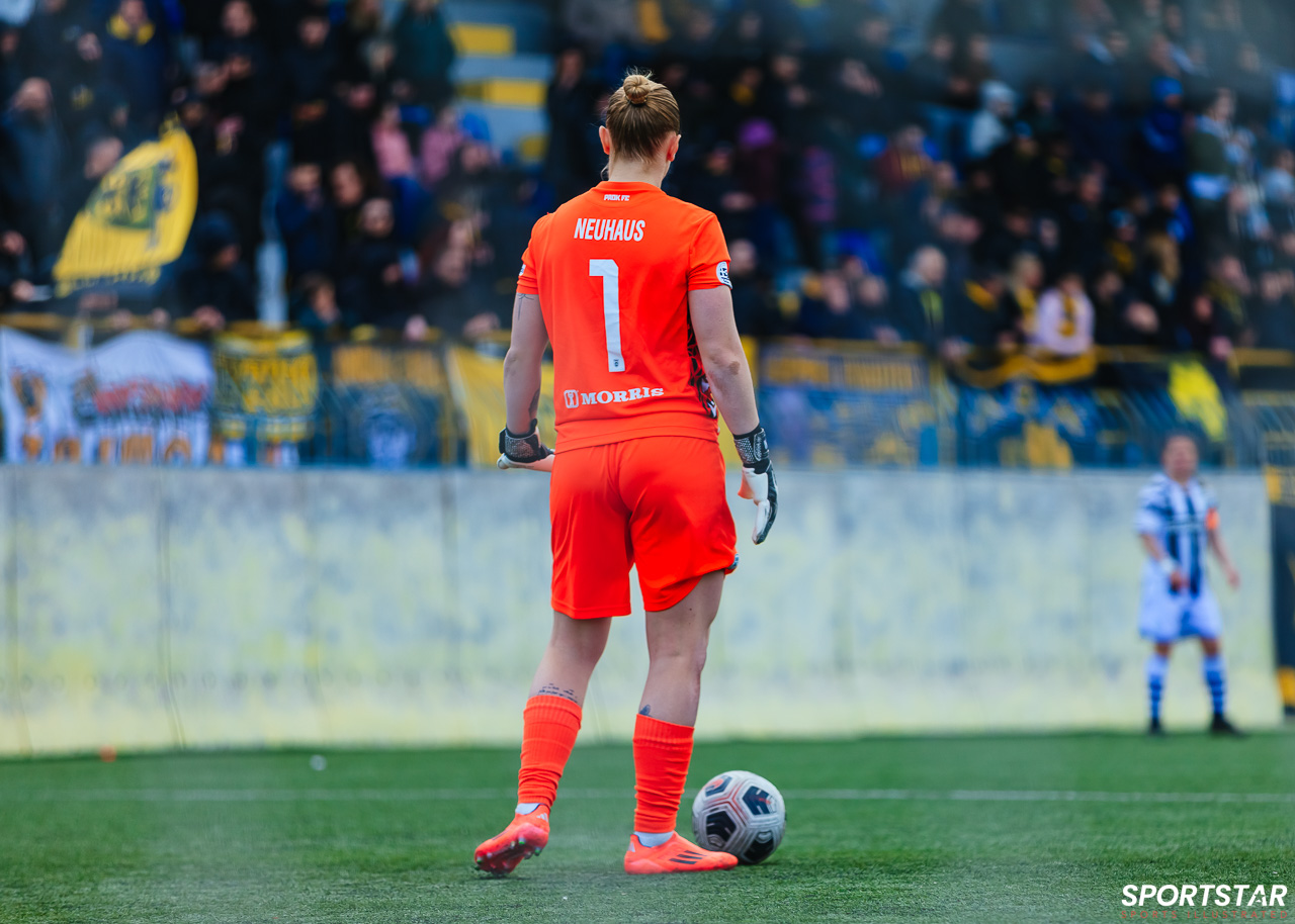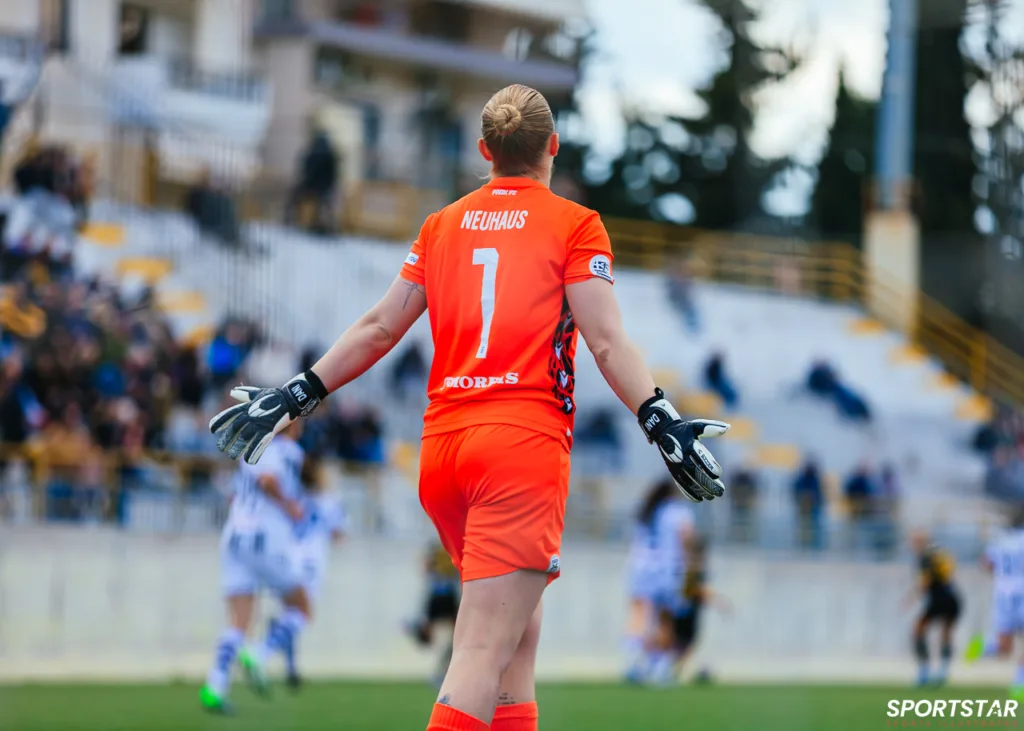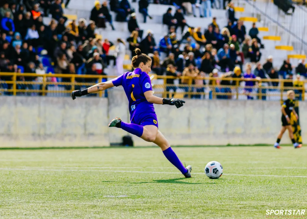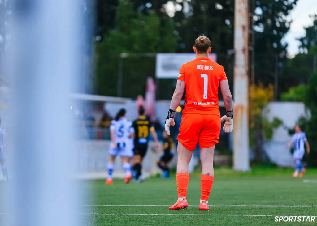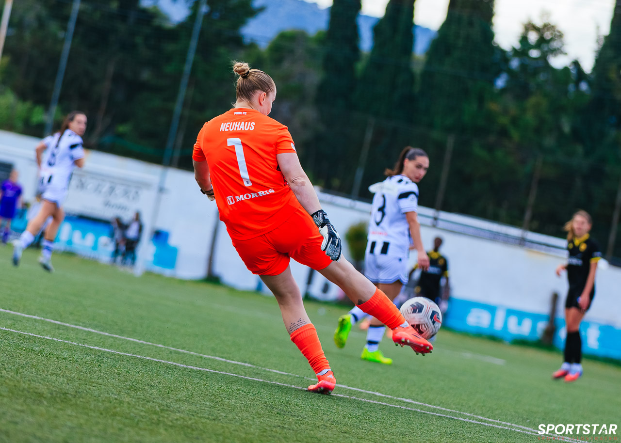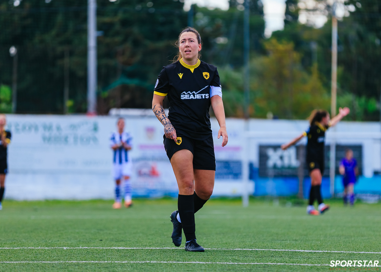 Στιγμές από το μεγάλο ντέρμπι της 20ης αγωνιστικής της Α’ Εθνικής Γυναικών στους Αγίους Αναργύρους, εκεί όπου ΑΕΚ και ΠΑΟΚ έμειναν στο 0-0.