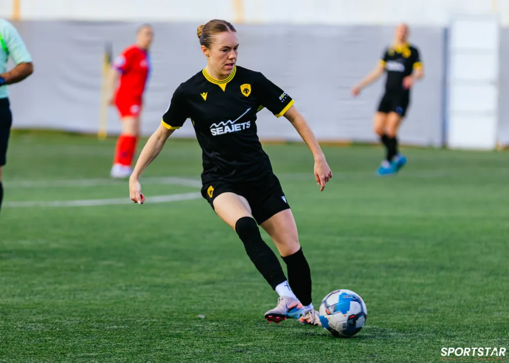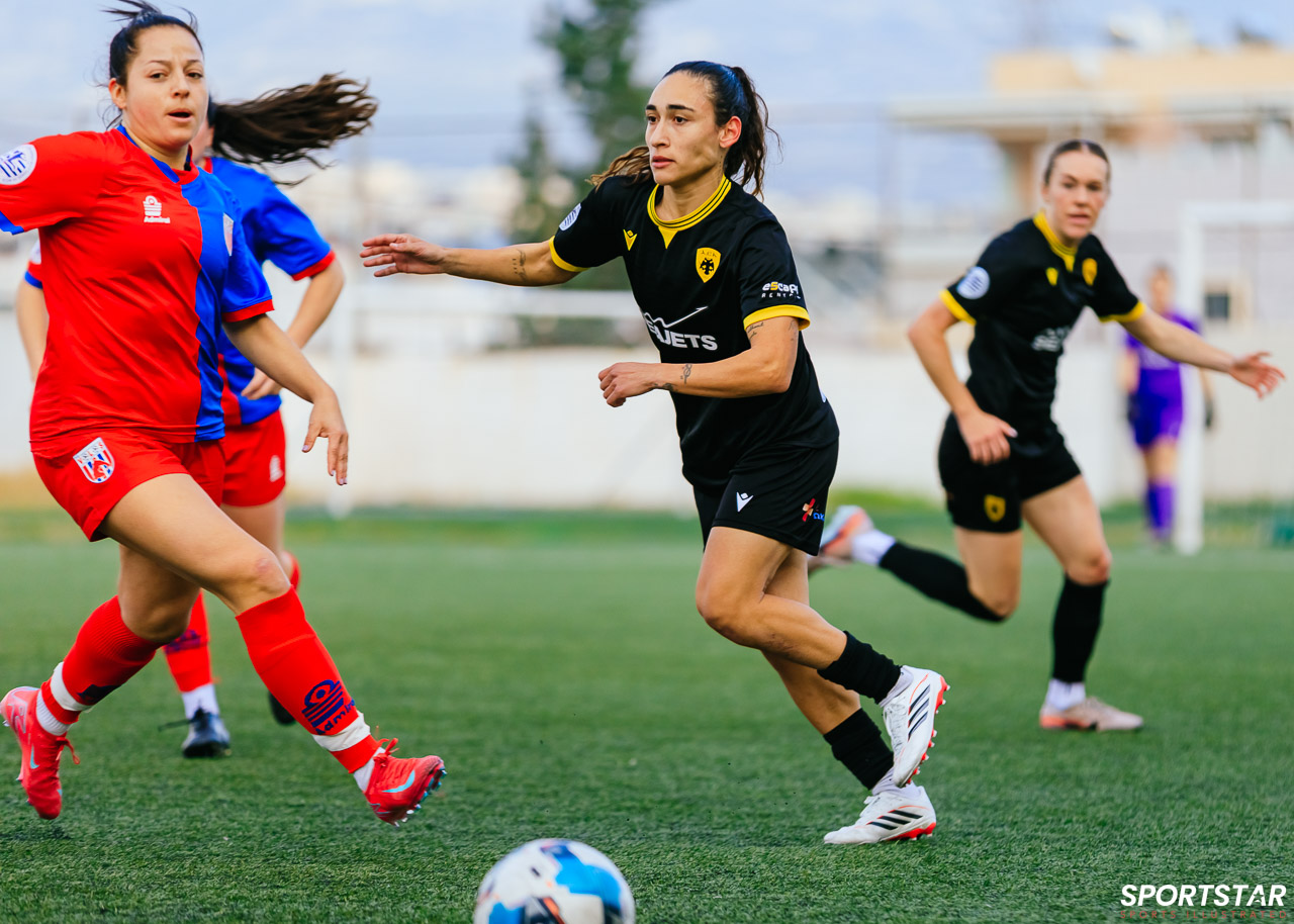 Στην επανάληψη η ΑΕΚ ανέβασε ταχύτητα και τελικά πήρε προβάδισμα στο 63’, όταν η Λάρσον βρέθηκε στο σωστό σημείο και με προβολή από κοντά έκανε το 1-0. Η ομάδα συνέχισε να πιέζει και άγγιξε και δεύτερο τέρμα, αλλά δεν «καθάρισε» το παιχνίδι σε εκείνο το διάστημα.