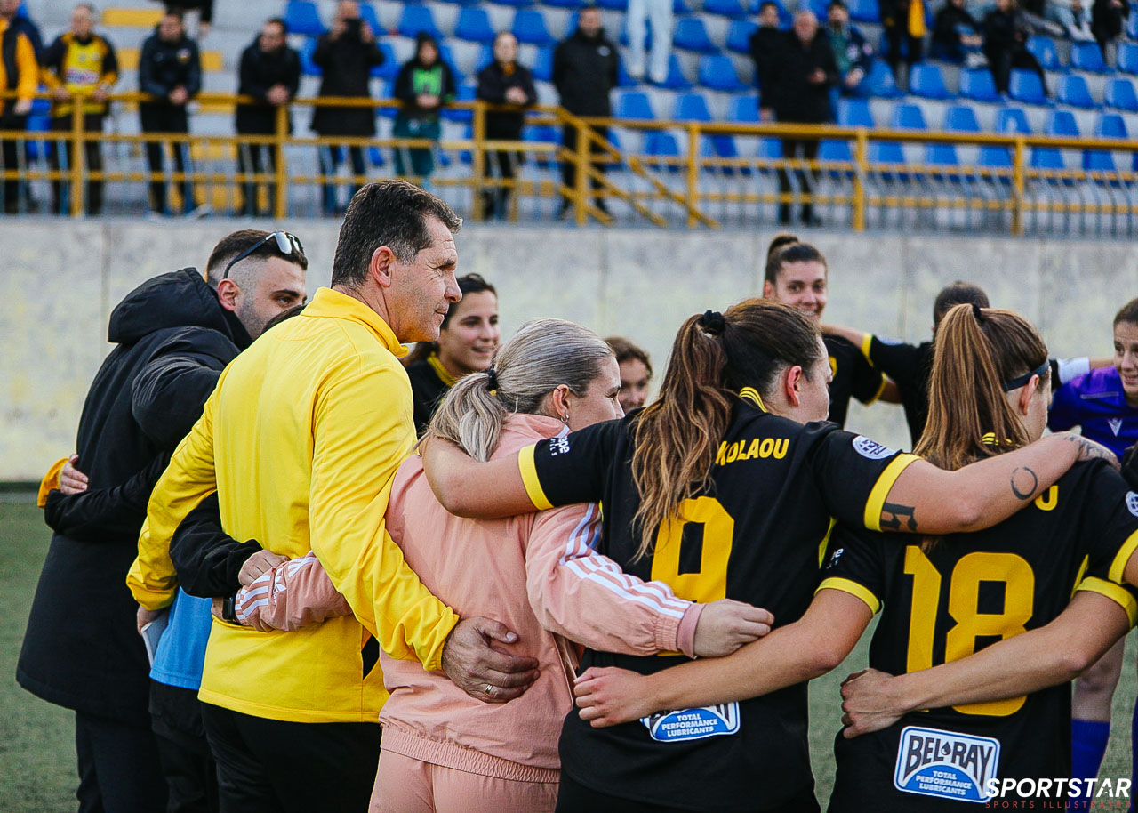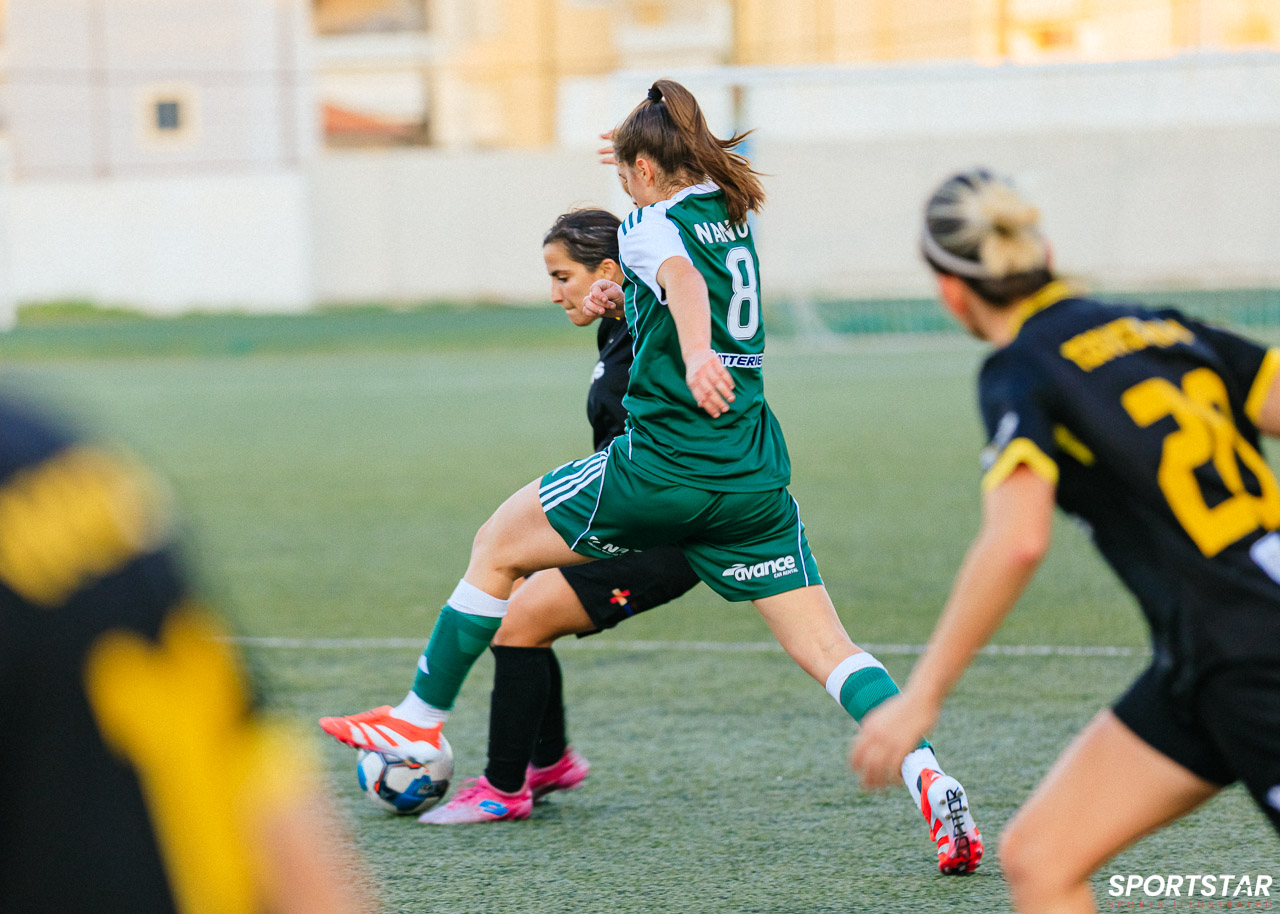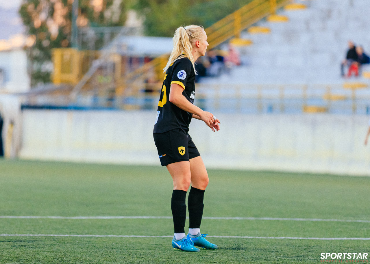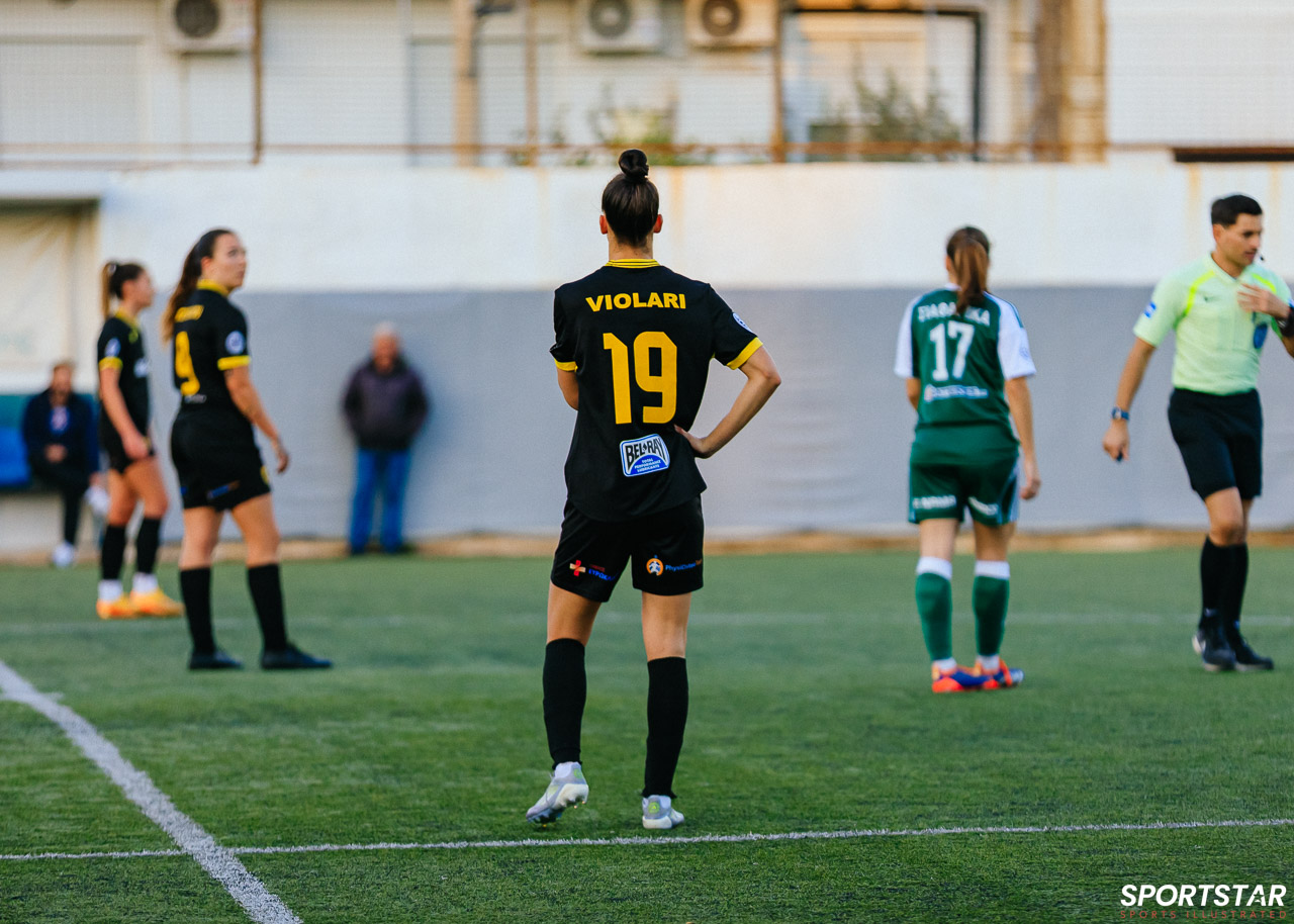 Το πρώτο ημίχρονο ξεκίνησε με απευθείας εκτέλεση φάουλ της Πούλιου στο 5’, ενώ ακολούθησαν κεφαλιά και σουτ της Βιολάρη στο 7’ και στο 21’. Οι «κιτρινόμαυρες» συνέχισαν να απειλούν με σουτ της Λάρσον στο 30’ και κεφαλιά της Κόγγουλη στο 37’.