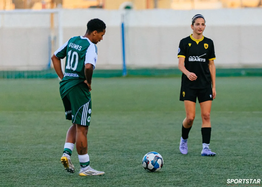 Η αντίδραση των φιλοξενούμενων ήρθε προς το τέλος του ημιχρόνου, με σουτ της Γκαμπς εκτός περιοχής στο 39’ και προσπάθεια της Κόλια για σουτ από τη μικρή περιοχή στο 44’.