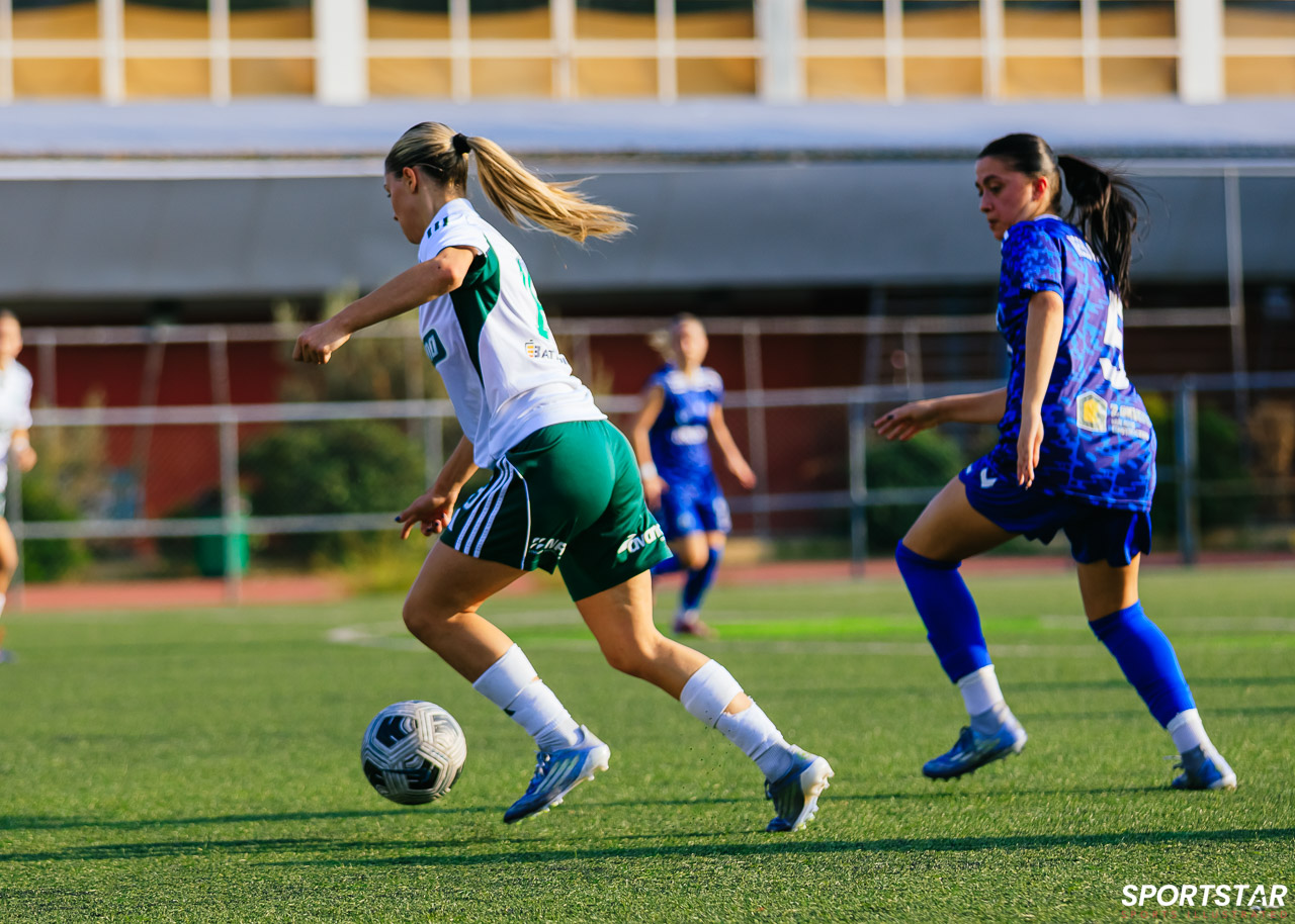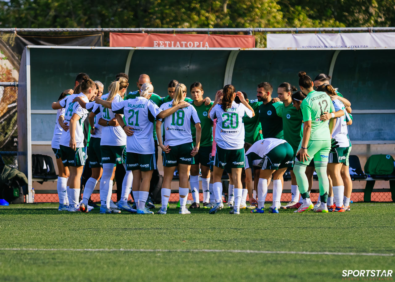 Οι «πράσινες» άνοιξαν το σκορ στο 29’ με μακρινό σουτ της Πούλιου (0-1), όμως δέκα λεπτά αργότερα οι γηπεδούχες απάντησαν, φέρνοντας το ματς στα ίσια πριν το τέλος του πρώτου μέρους (1-1).