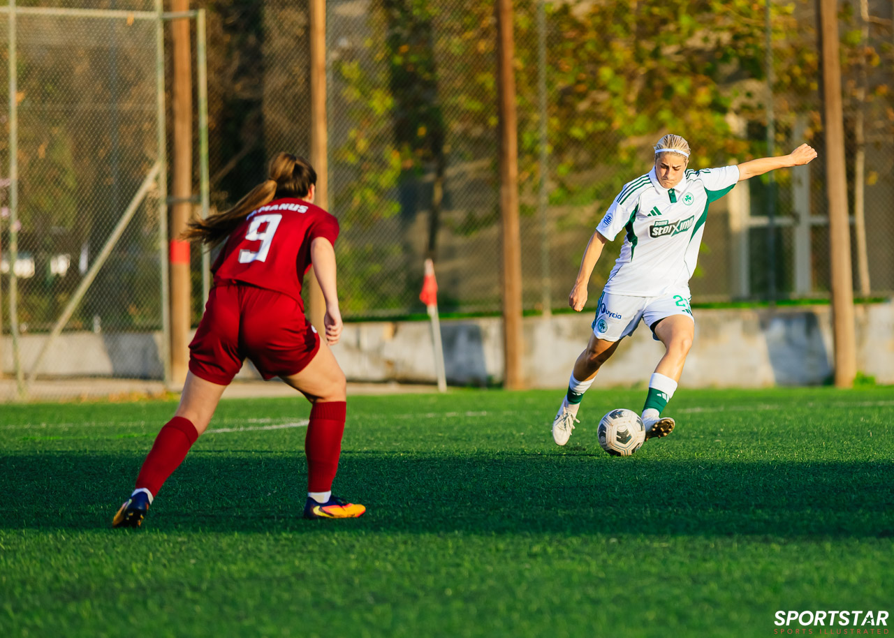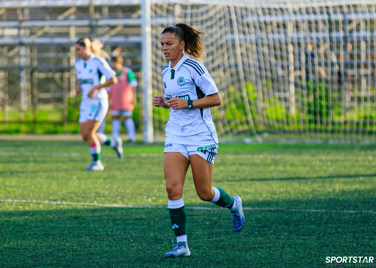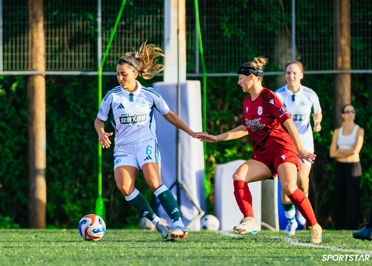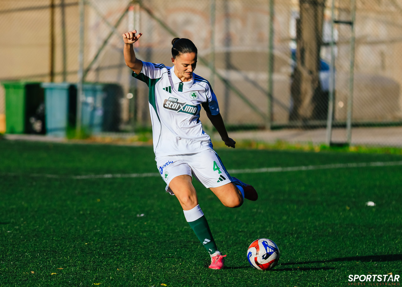 Ο Παναθηναϊκός ξεκίνησε με διάθεση να πάρει τον έλεγχο του αγώνα. Οι «πράσινες» του Κνέζεβιτς κυκλοφόρησαν σωστά την μπάλα, πίεσαν ψηλά και έψαξαν το γρήγορο γκολ, όμως η τελική προσπάθεια τους πρόδωσε. Η Πέιου και η Ίλιτς δοκίμασαν επανειλημμένα την τύχη τους, ενώ η Μπριάνα οργάνωσε το παιχνίδι με ωριμότητα από τον άξονα. Παρ’ όλα αυτά, η άμυνα του Οδυσσέα άντεξε, κρατώντας με συνέπεια το μηδέν στο πρώτο μέρος.